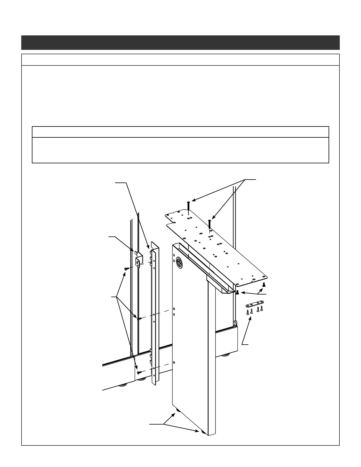 2. Right-hand conguration is shown. Attach panel attachment bracket to opposite side of support leg for a left-hand