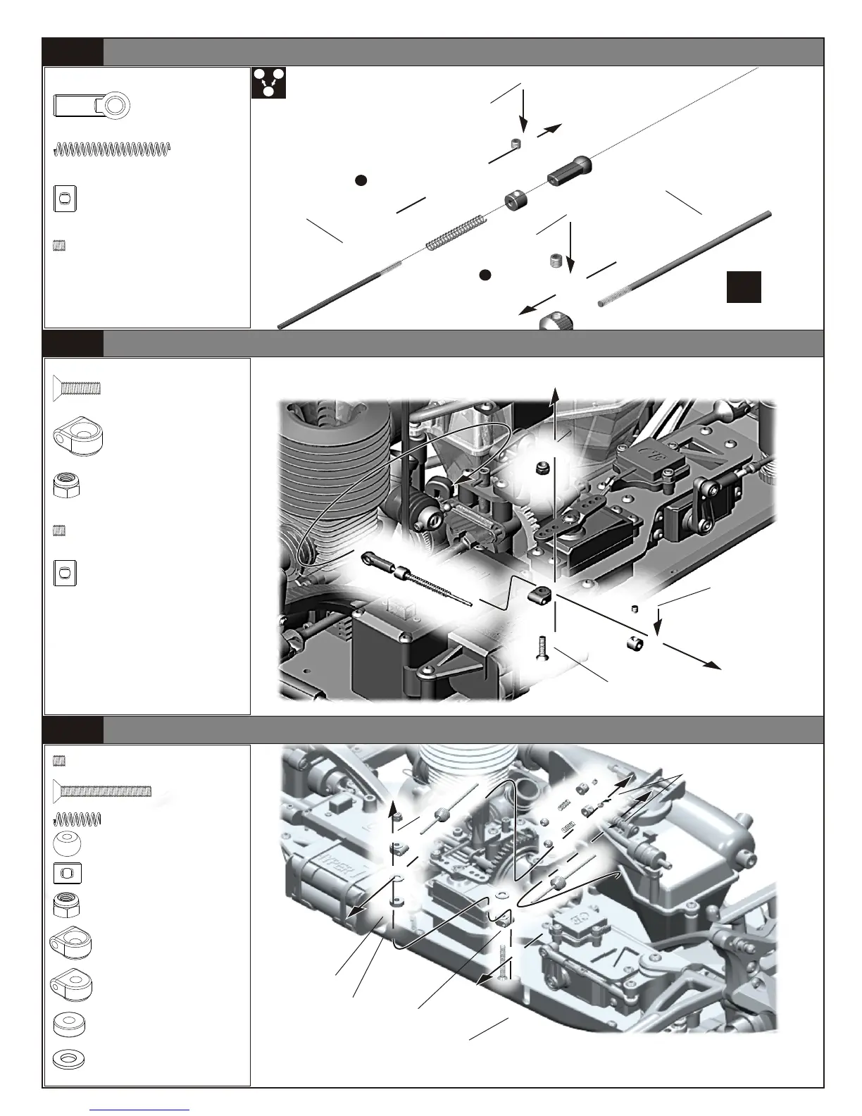 HoBao Pro Hyper ST - 56 Assembly of Throttle Linkage and Brake Linkages; 57 Assembly of Throttle Linkage into Lever; 58 Assembly of Brake Linkage into Brake Lever