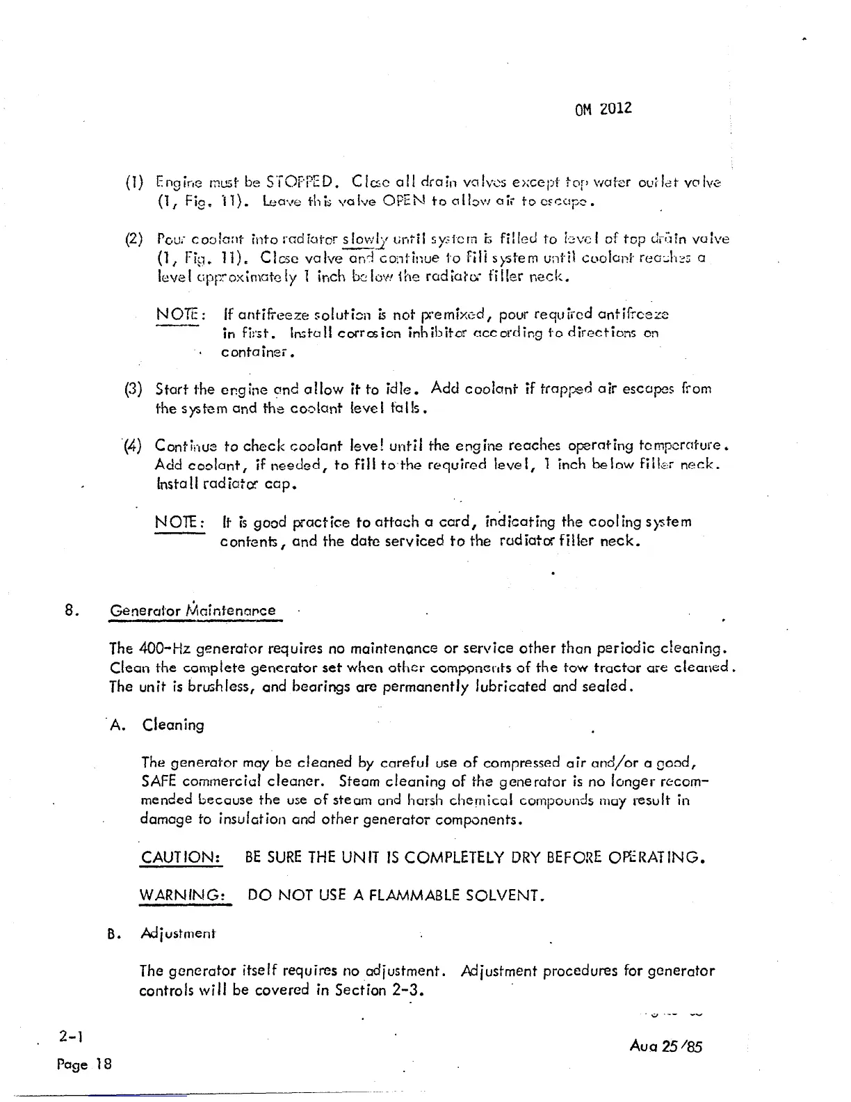 Clean the complete generator set wl~cn other compwxrh of the tow tractor are cleaned.