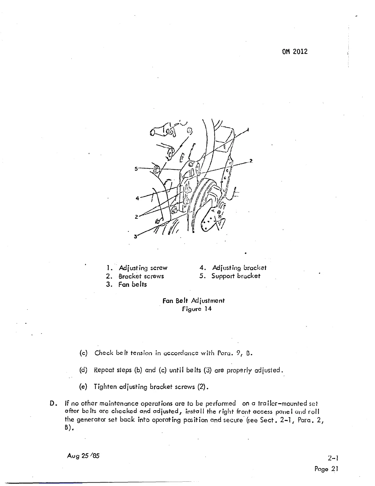 (e) Tighten adjusting bracket screws (2).