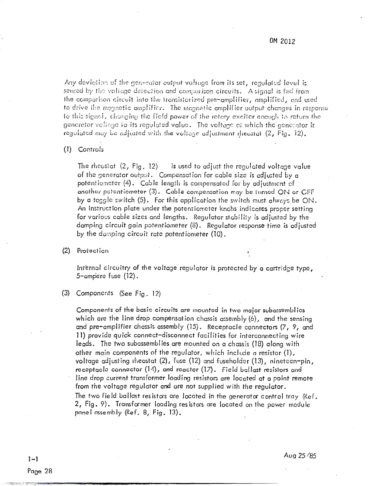 2, Fig. 9). Transformer loading resistox are located on the power module