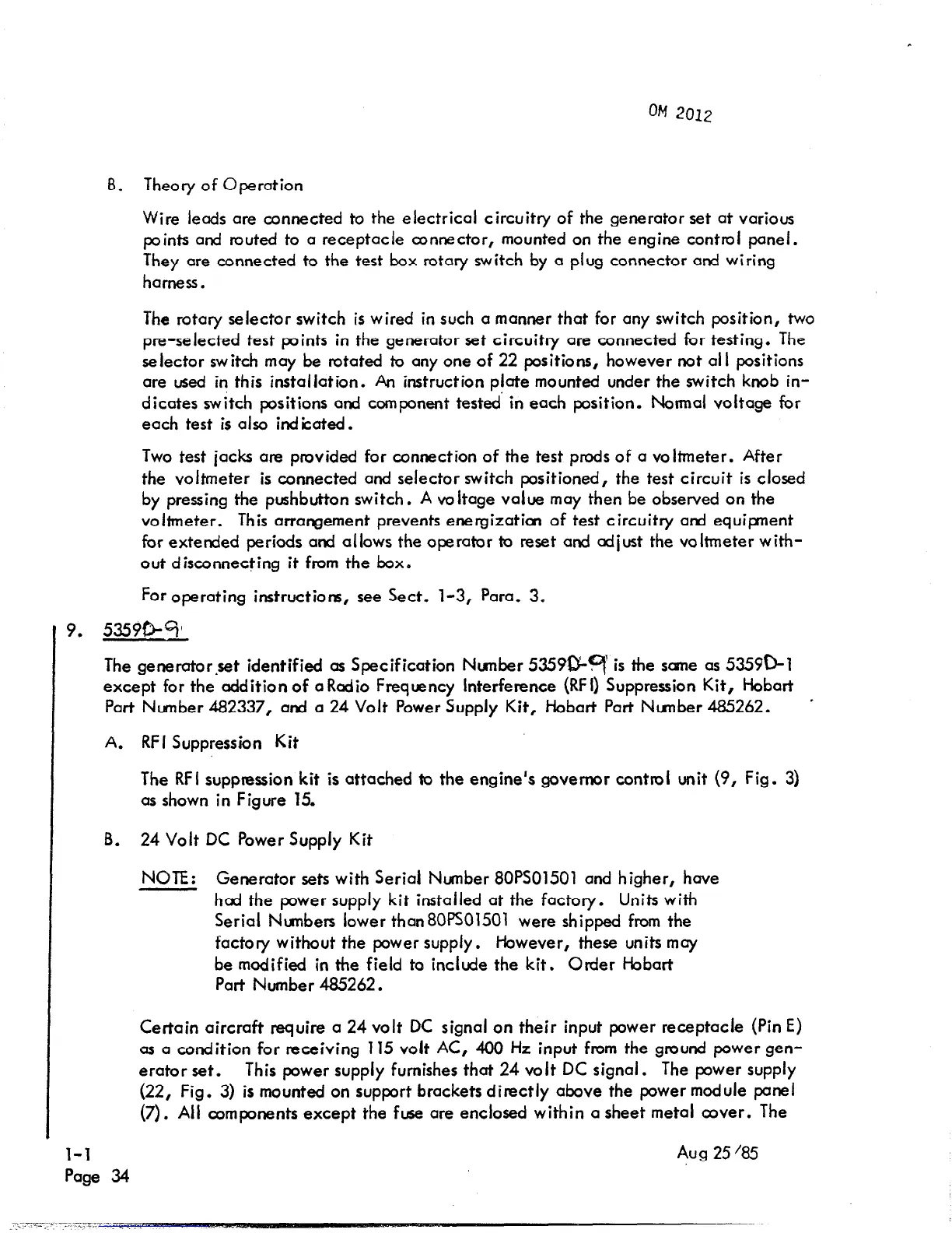 except for the addition of a Rodio Frequency Interference (RF I) Suppression Kit, Hobart