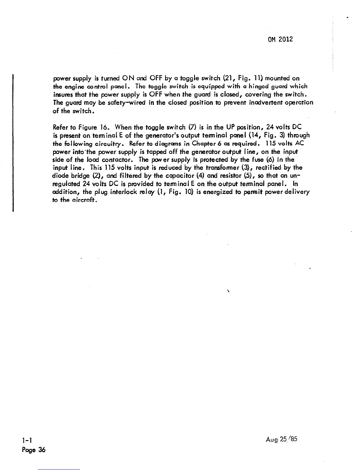 power supply is turned ON and OFF by a toggle switch (21, Fig. 11) mounted on