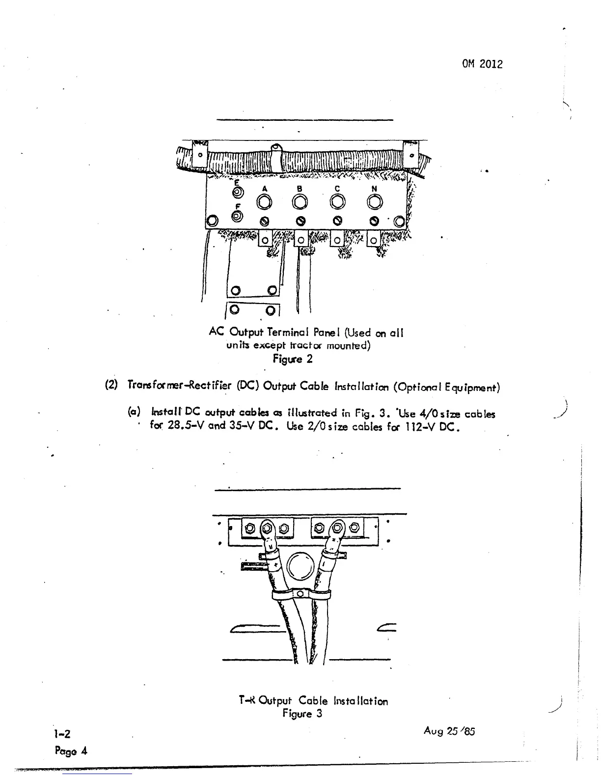 (2) Transformer-Rectifier (DC) Output Cabfe Installation (Optional Equipment)