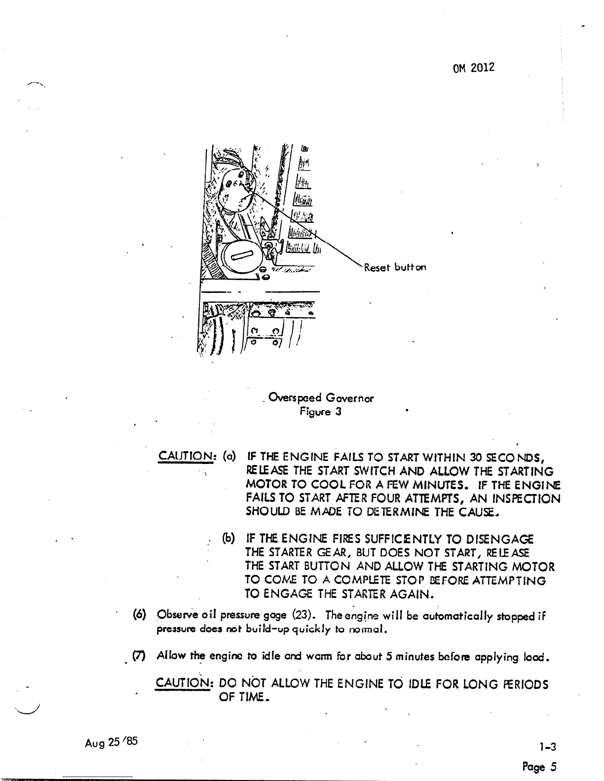 . (7) Allow the engine to ‘die and warm for about 5 minutes before applying load.