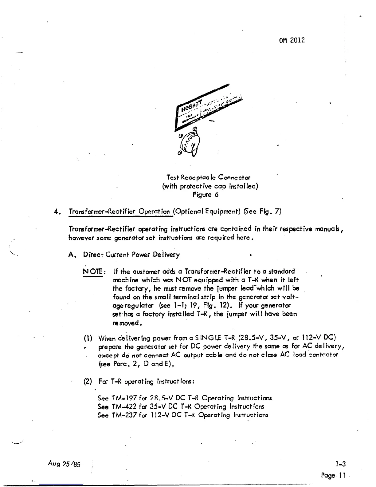 Transformer-Rectifier operating instructions ore contained in their respective manual ,