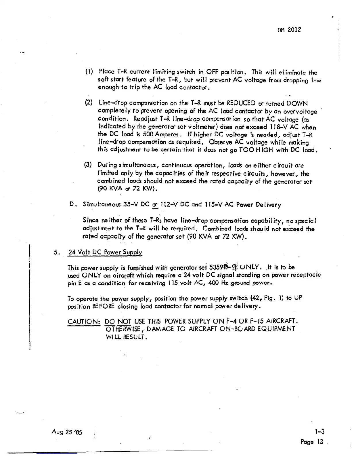 CAUTION: DO NOT USE THIS POWER SUPPLY ON F-4 OR F-15 AIRCRAFT.