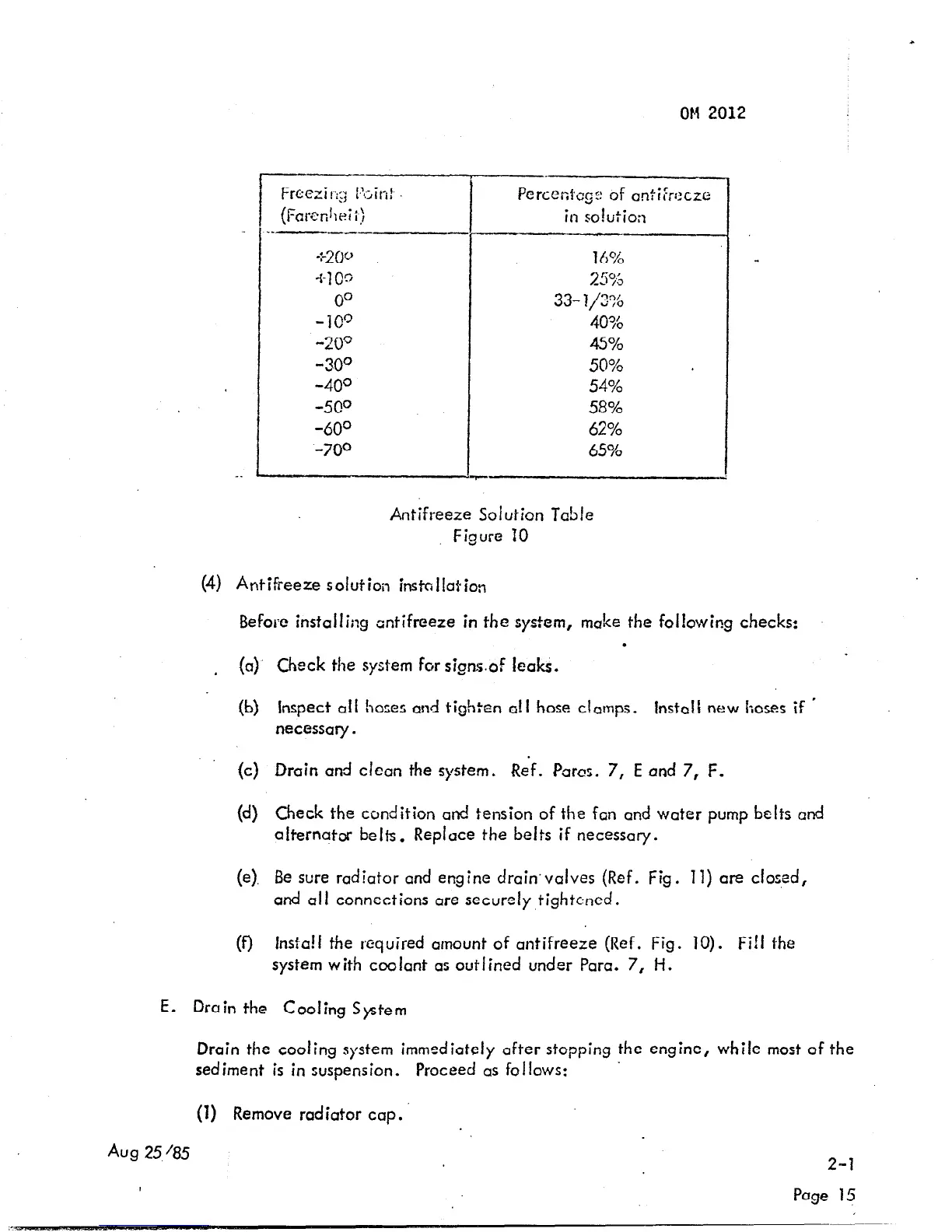 (e). Be sure radiator and engine drain.valves (Ref. Fig. 11) are closed,