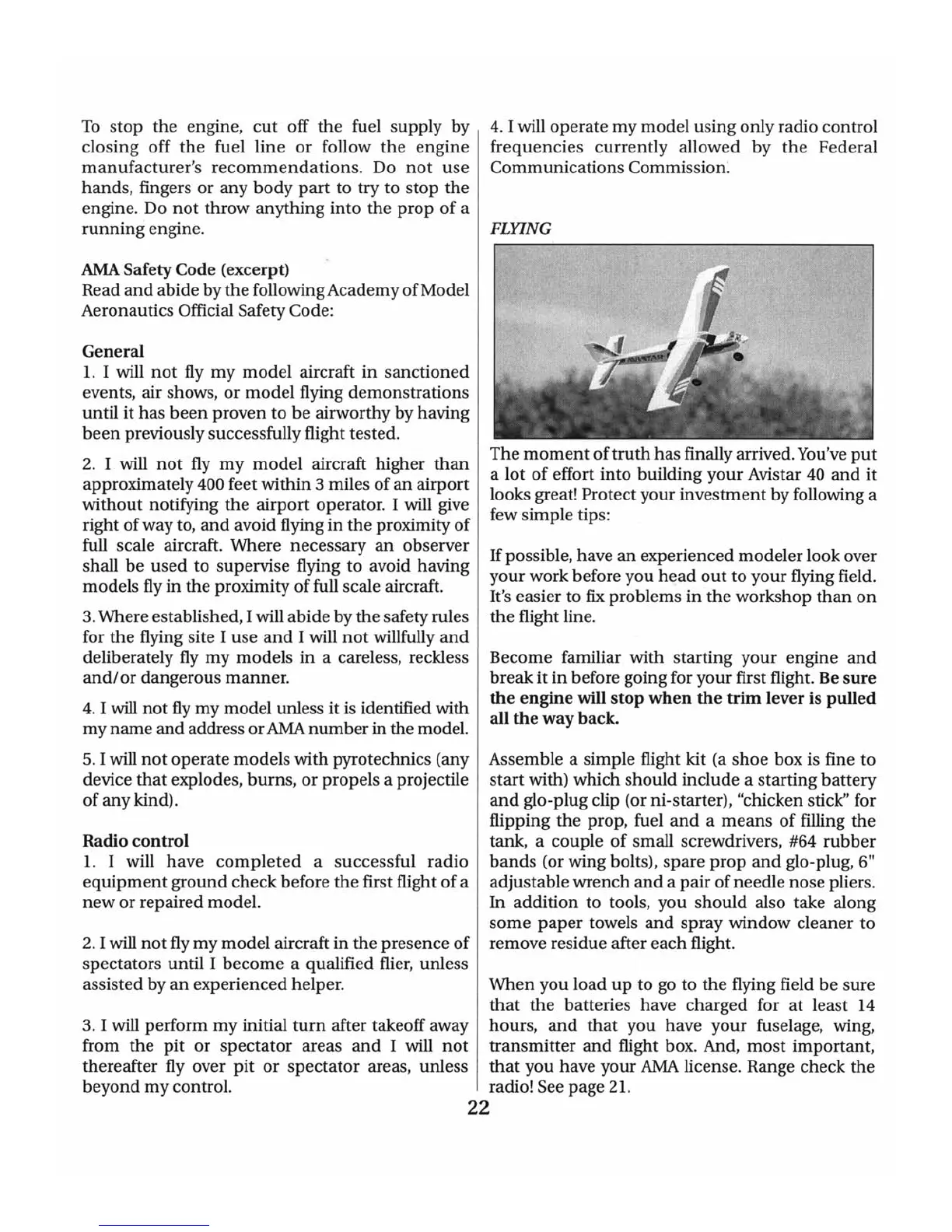 Hobbico Avistar - AMA Safety Code; Flying; General; Radio Control