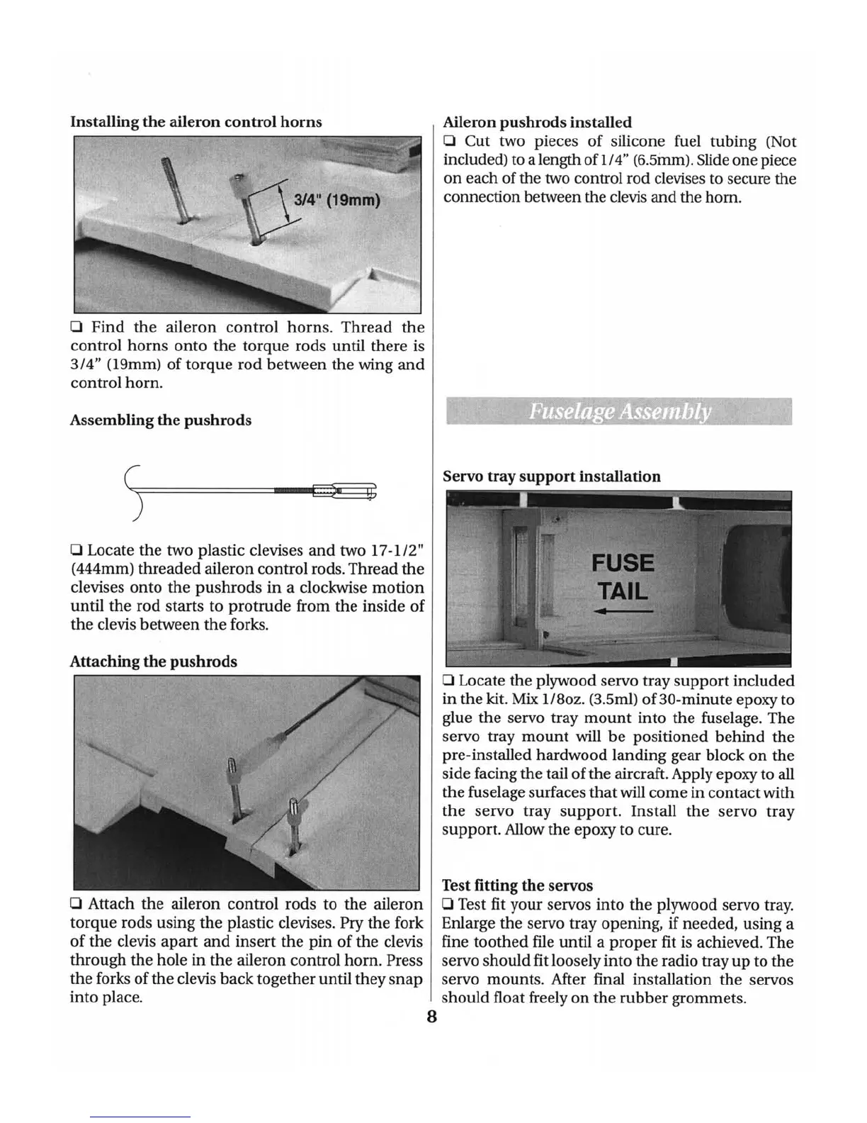 Hobbico Avistar - Fuselage Assembly; Installing the Aileron Control Horns; Aileron Pushrods Installed; Assembling the Pushrods