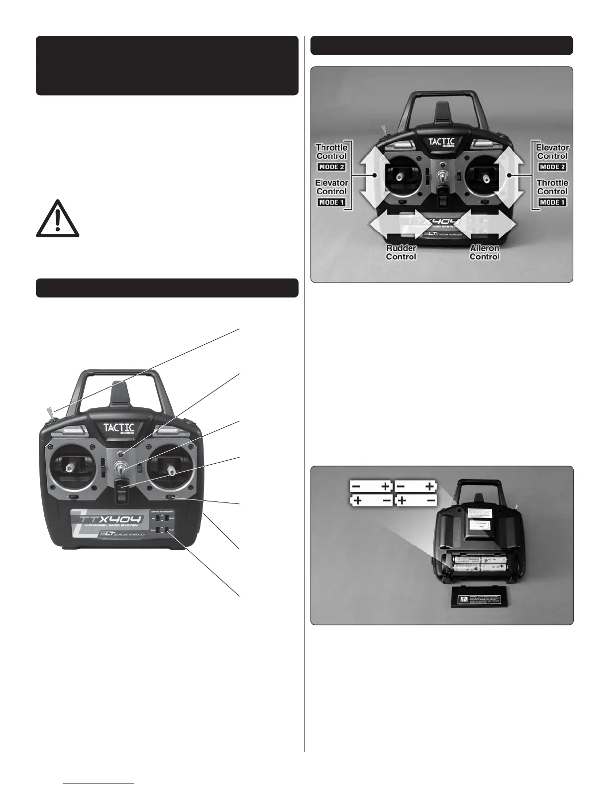 frequency pins before every fl ight. Tactic 2.4GHz transmitters