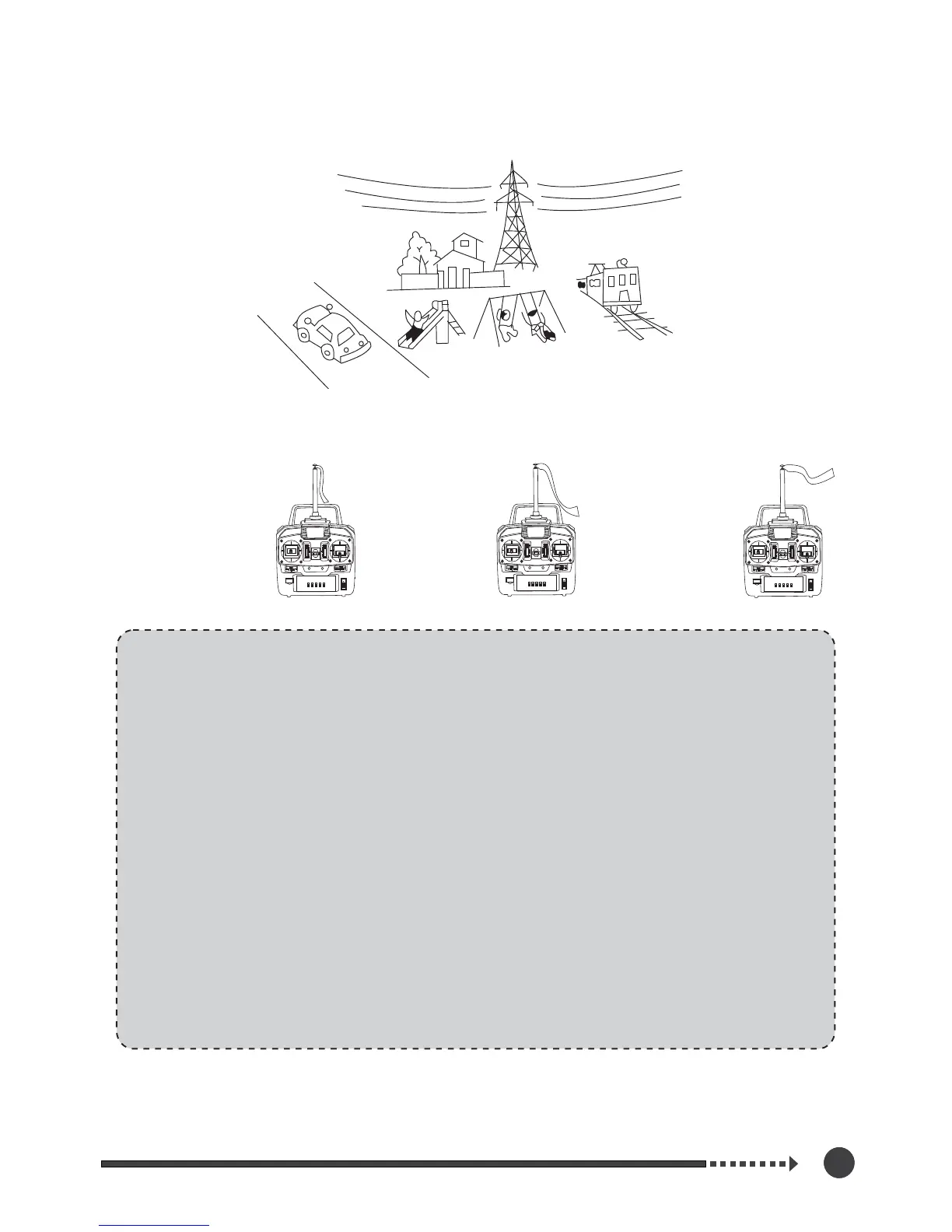 4. Keep the transmitter antenna fully extended during flying.