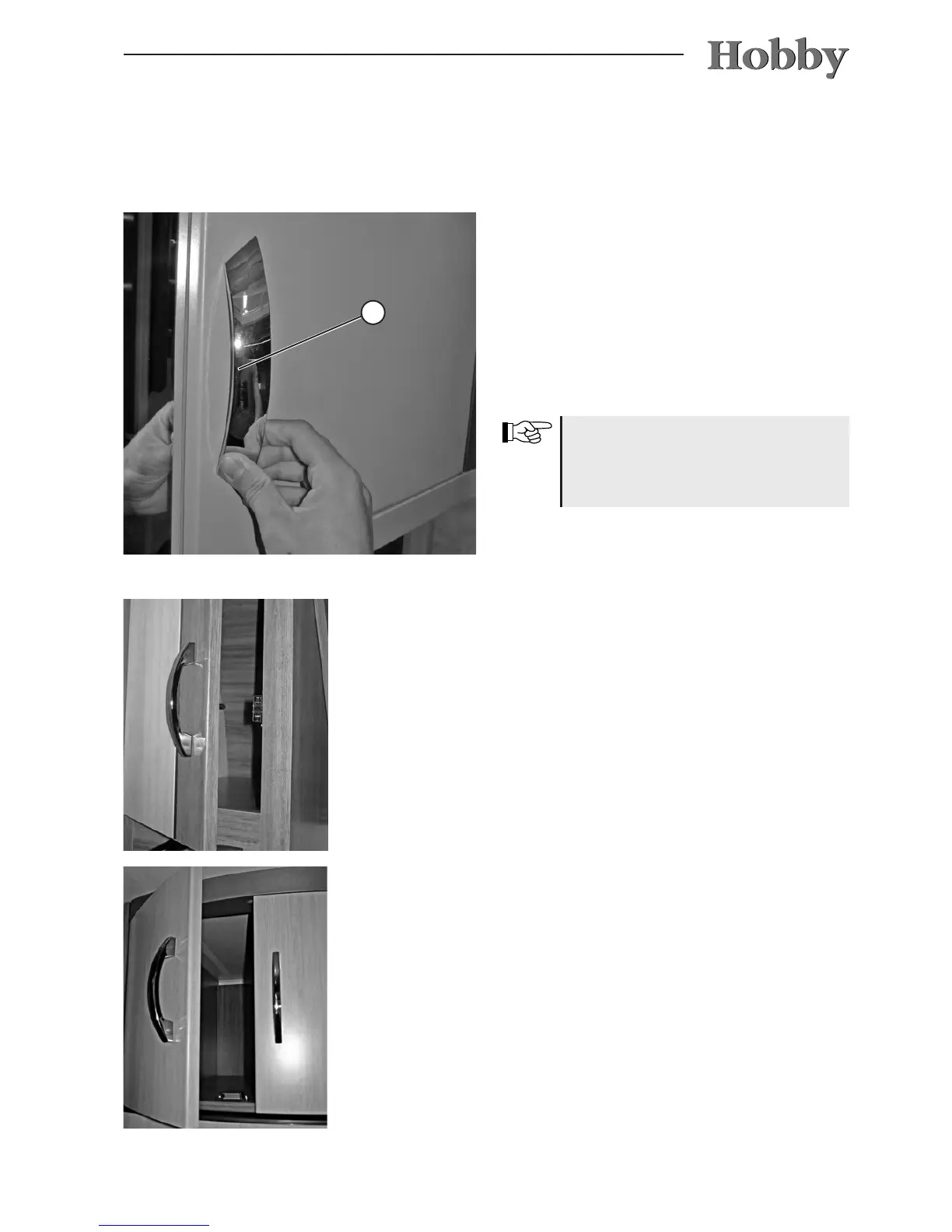 • Press on the ap or handle of the door until