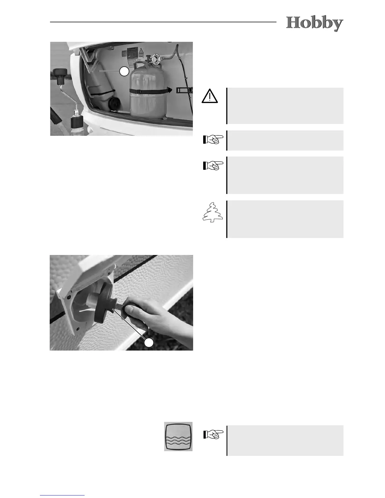 • Fill the water tank using the fresh water ller neck.