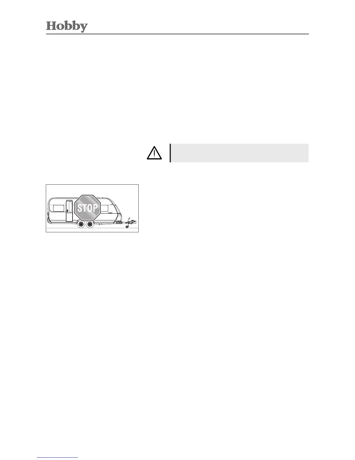 • The caravan must be hitched properly (see guidelines for the