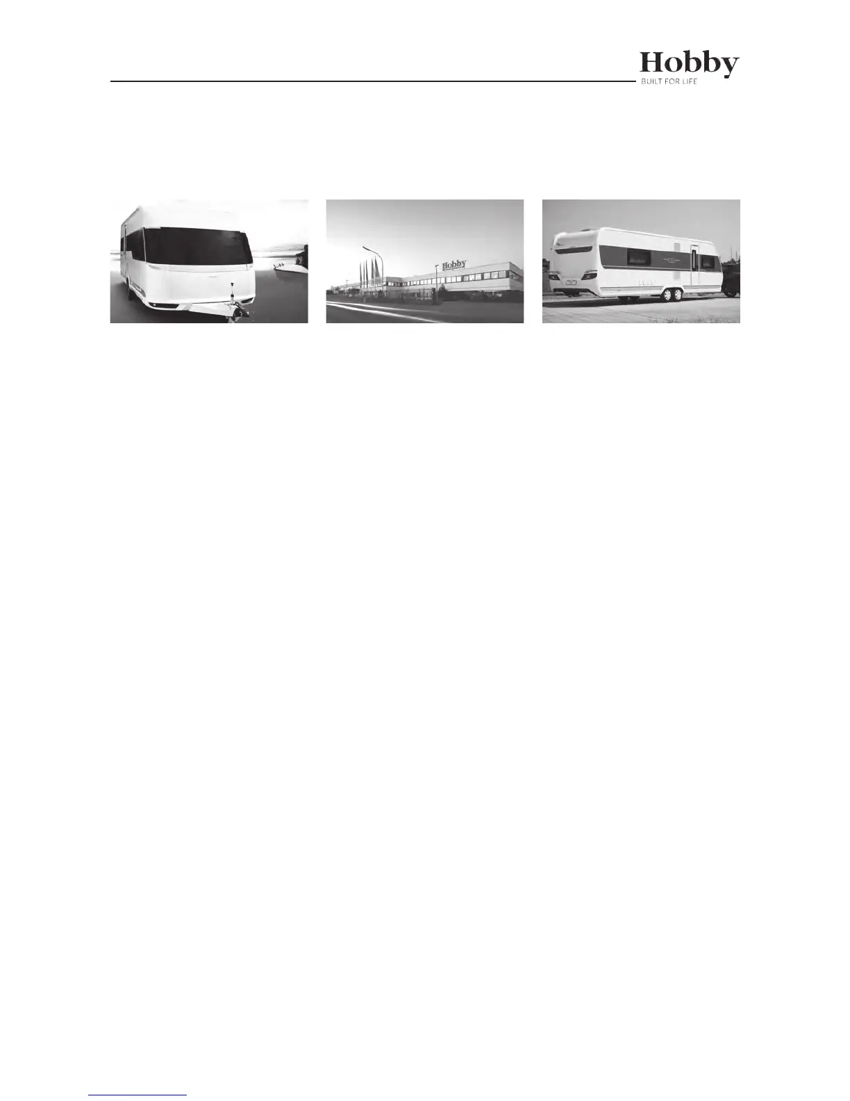 Congratulations on the purchase of your new HOBBY Caravan. The trust you have placed in us is both an