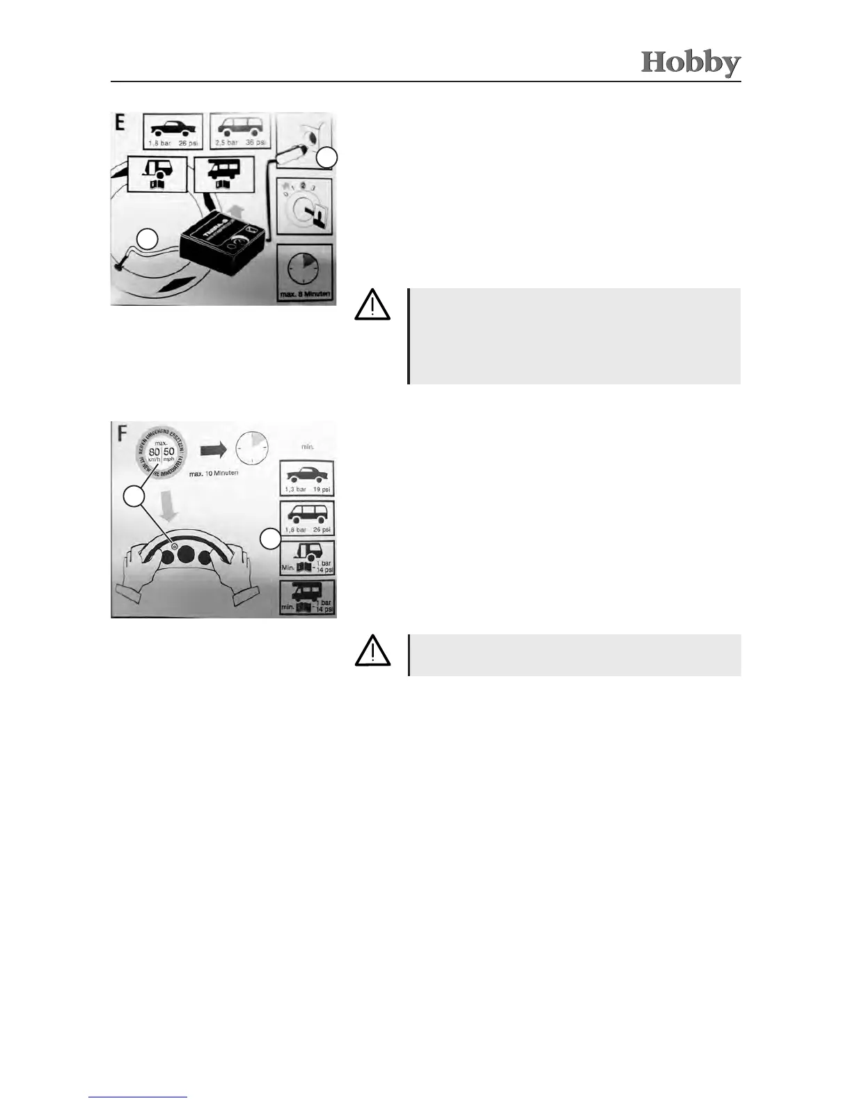 F Check the tyre pressure after driving no more than 10 minutes.