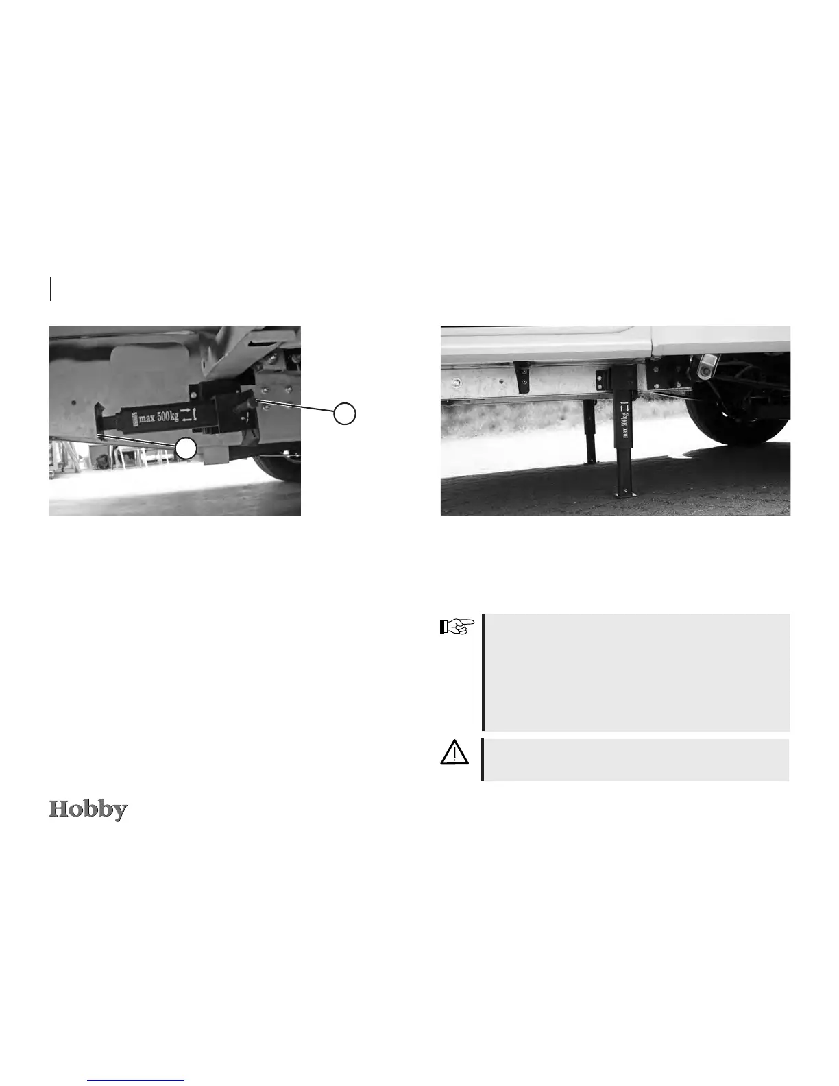 - Always load the levelling supports evenly (max. 500 kg per
