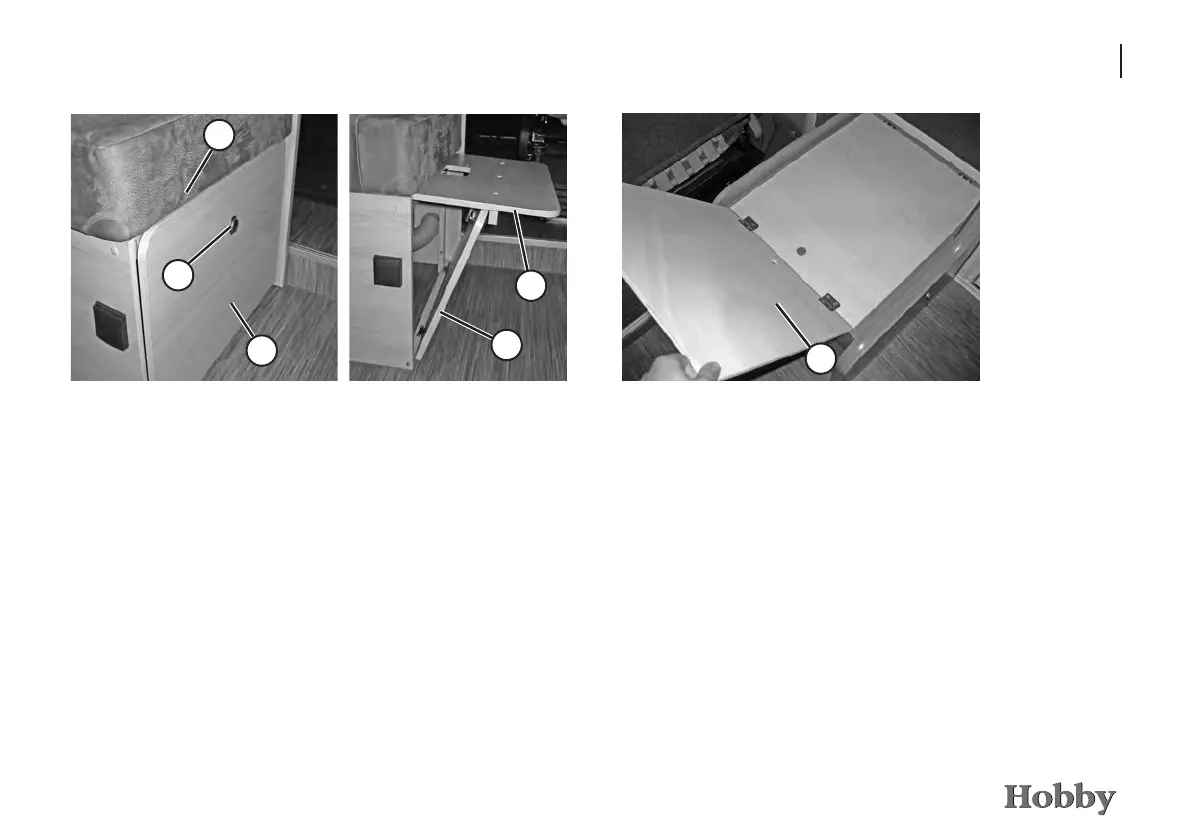 • Lower the hanging table (to do this, the lower table top must