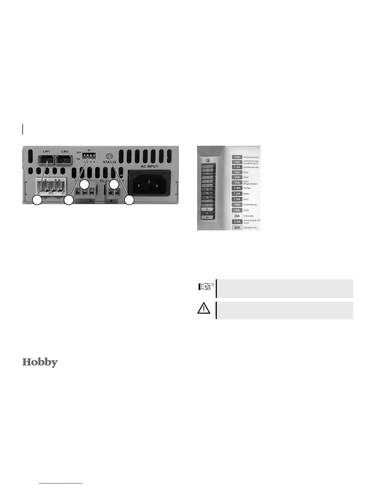 The fuses for the individual internal electric circuits are loca-