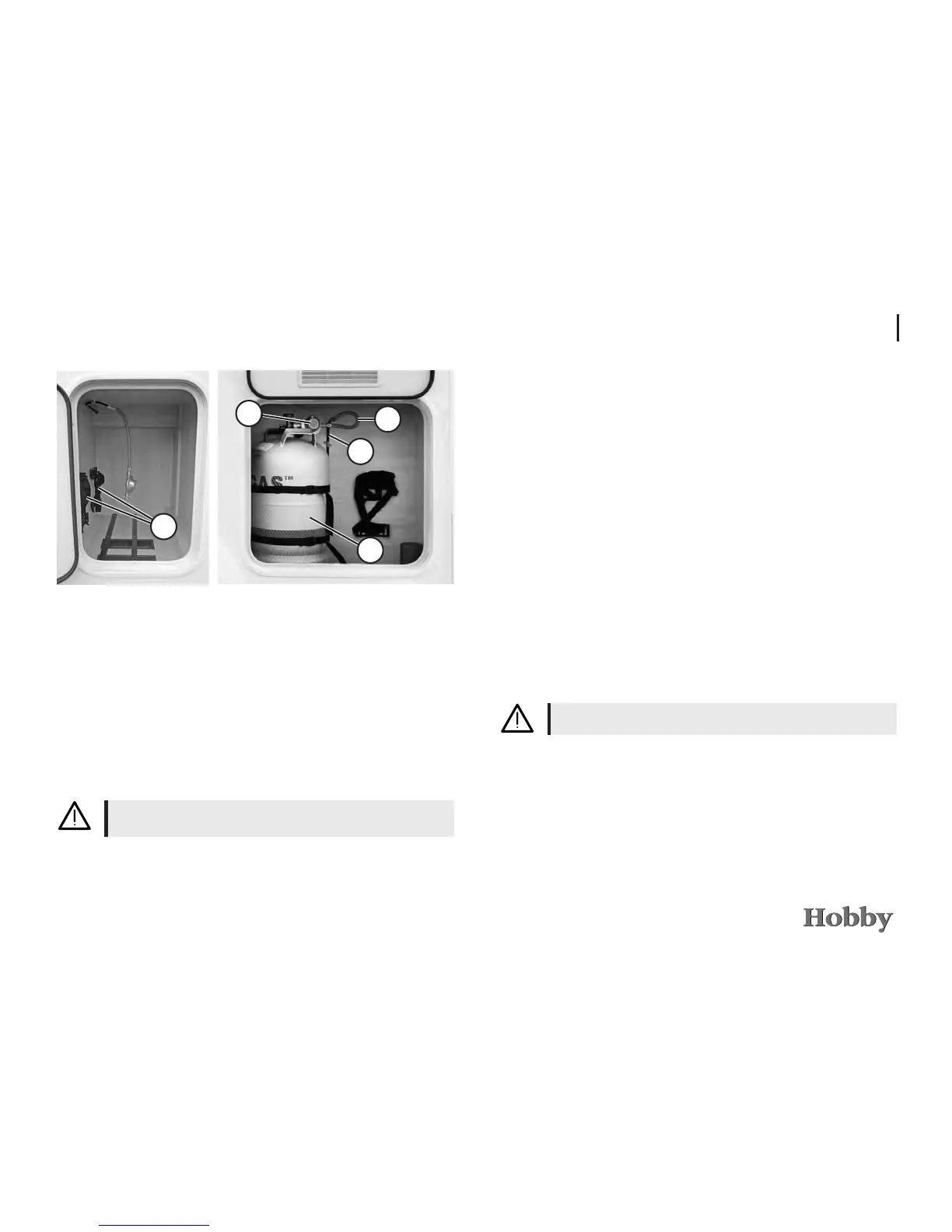 • Always check the gas cylinder mountings before driving.