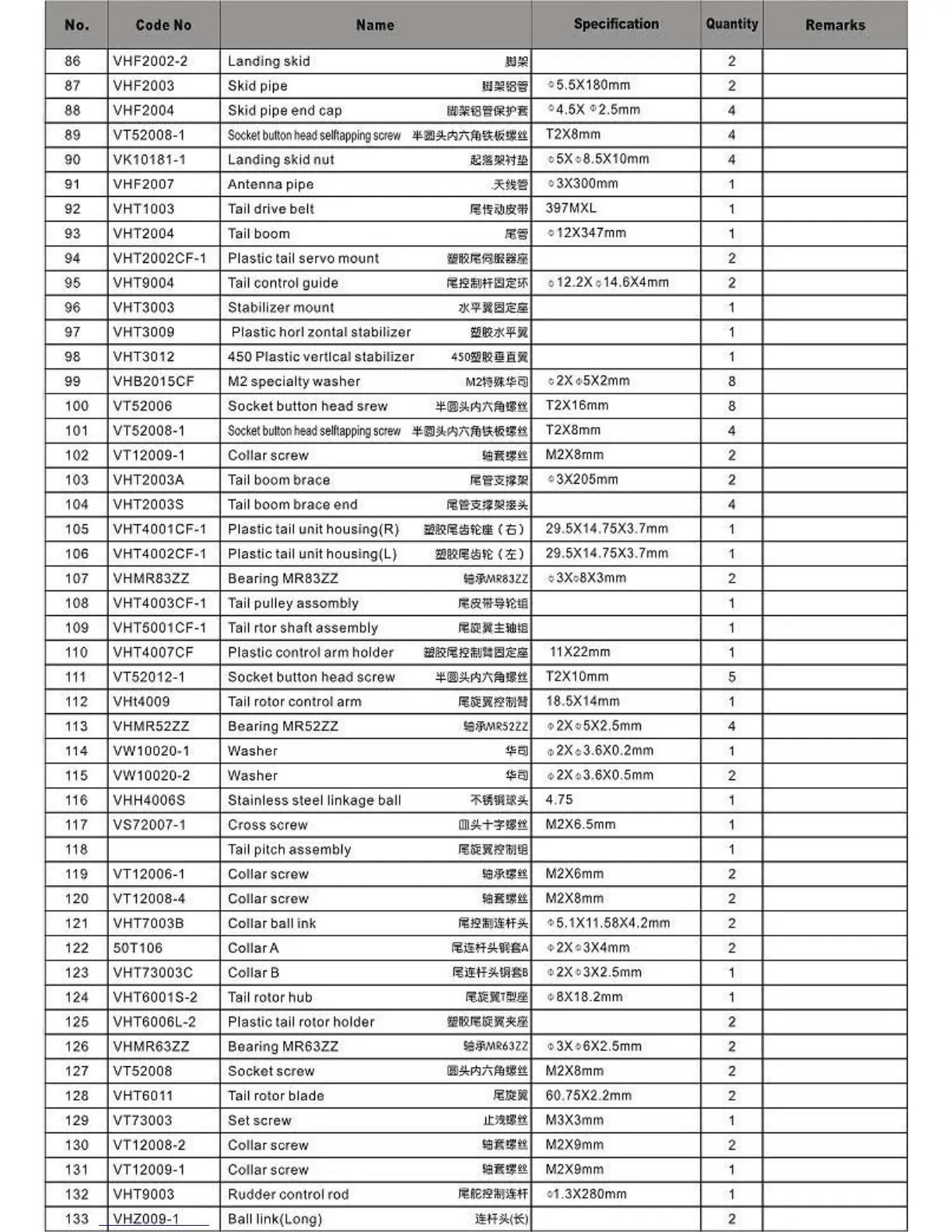 VHT6011 Tail rotor blade