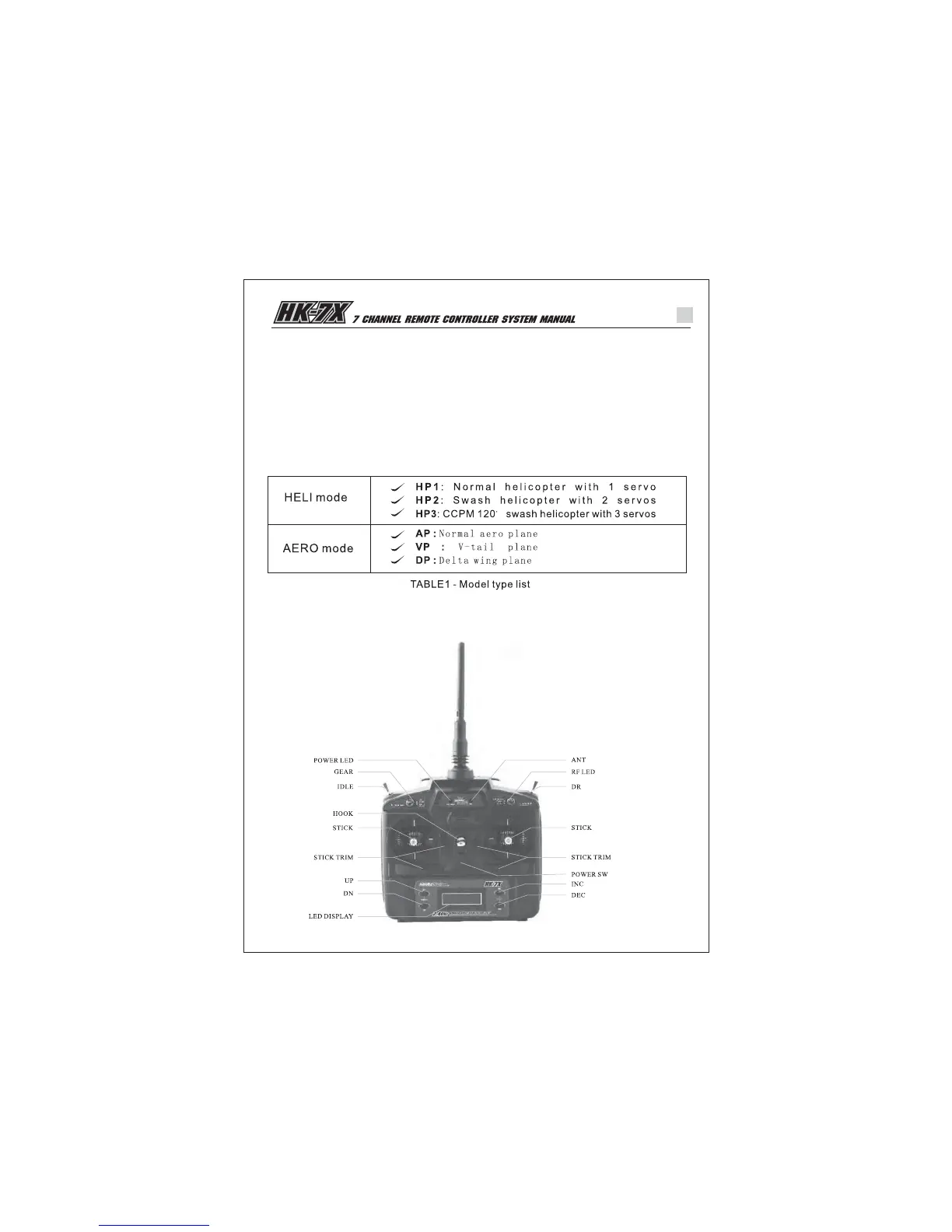 5᧪Support HELI(helicopter) mode and AERO mode. Following modes are supported in each mode: