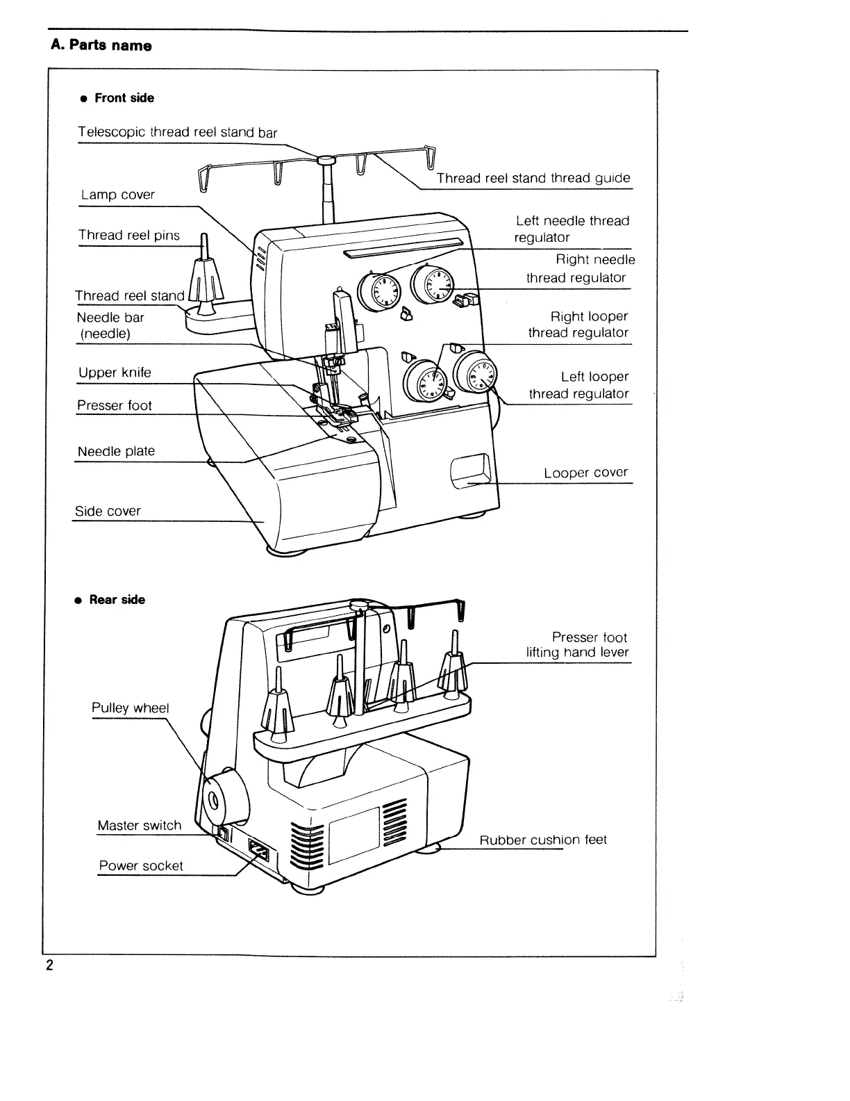 hobbylock 774 - Parts Identification; Front Side Parts; Rear Side Parts