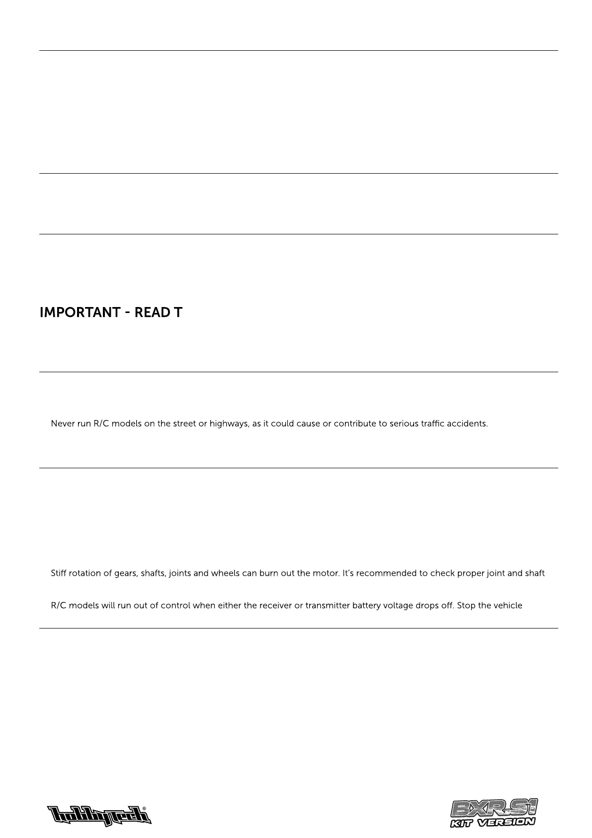 o avoid serious personal injury and property damage, operate all remotely controlled models in a responsive manner as out-