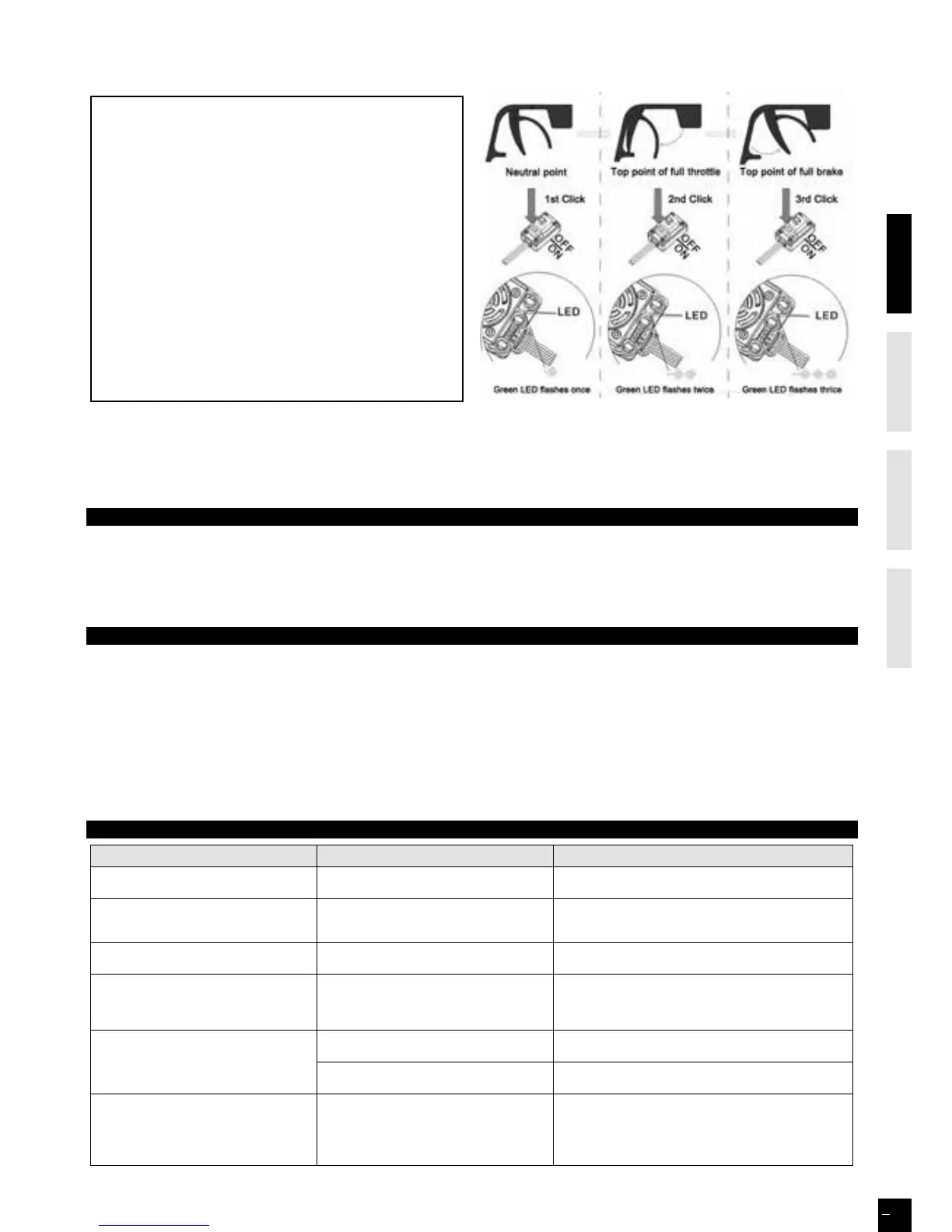 1) Normally, if the throttle stick is in the neutral range, neither the red LED nor the green LED lights.