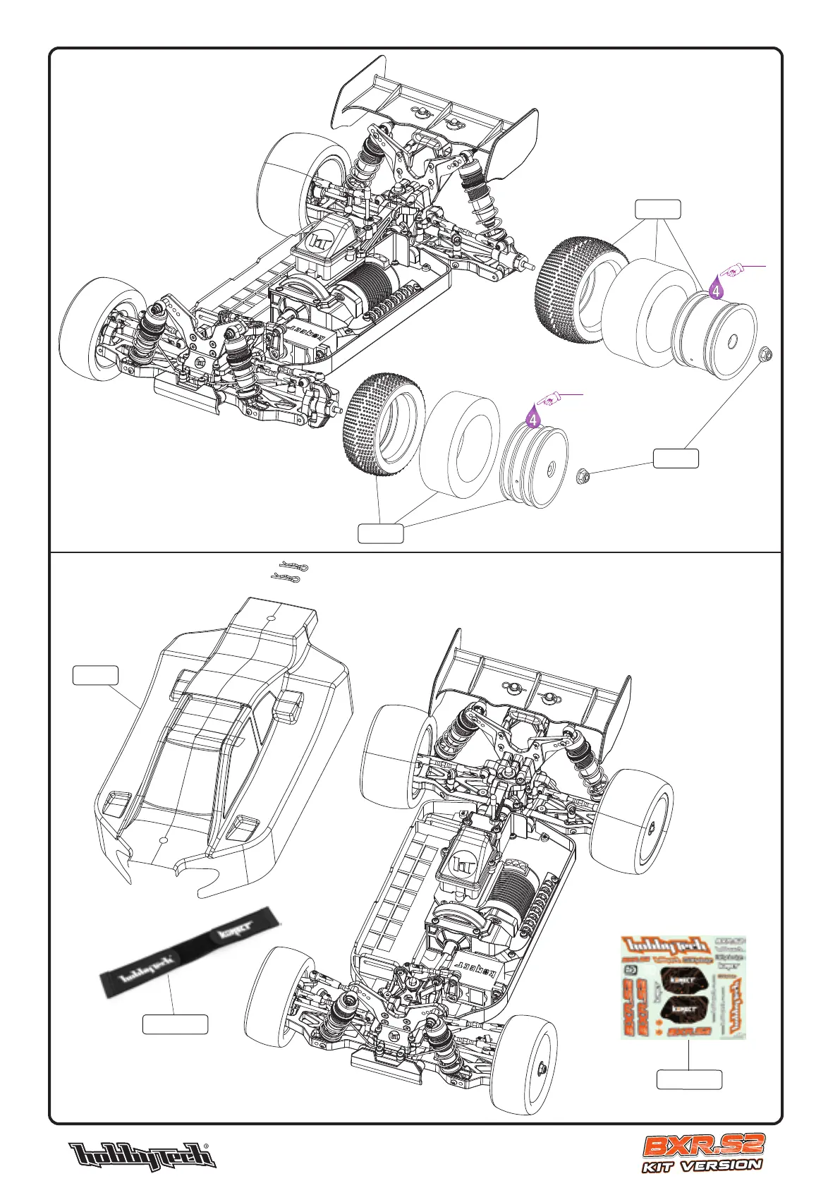 Hobbytech BXR.S2 KIT VERSION - Bag 24: Wheels Assembly; Wheels Assembly and Tire Gluing