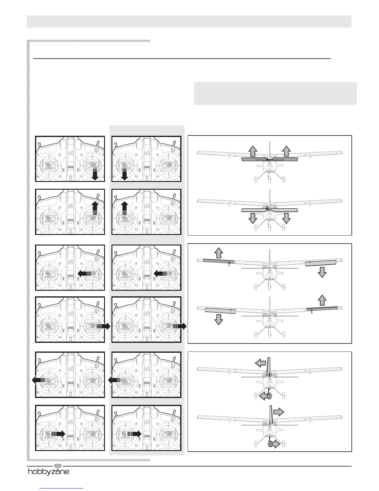 instructions to adjust control surfaces. Move the transmitter control sticks