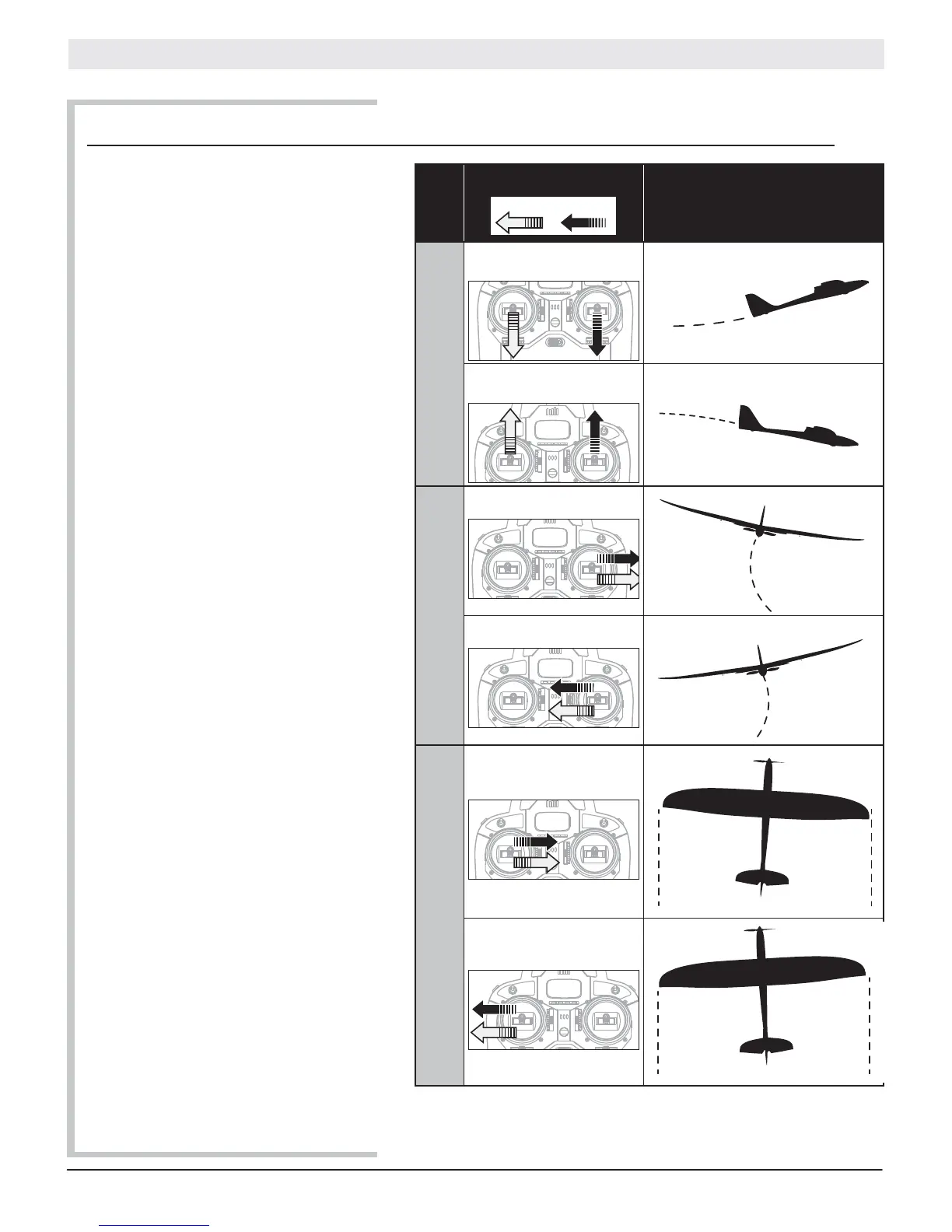 • Rudder left and right: Push the rudder stick left or