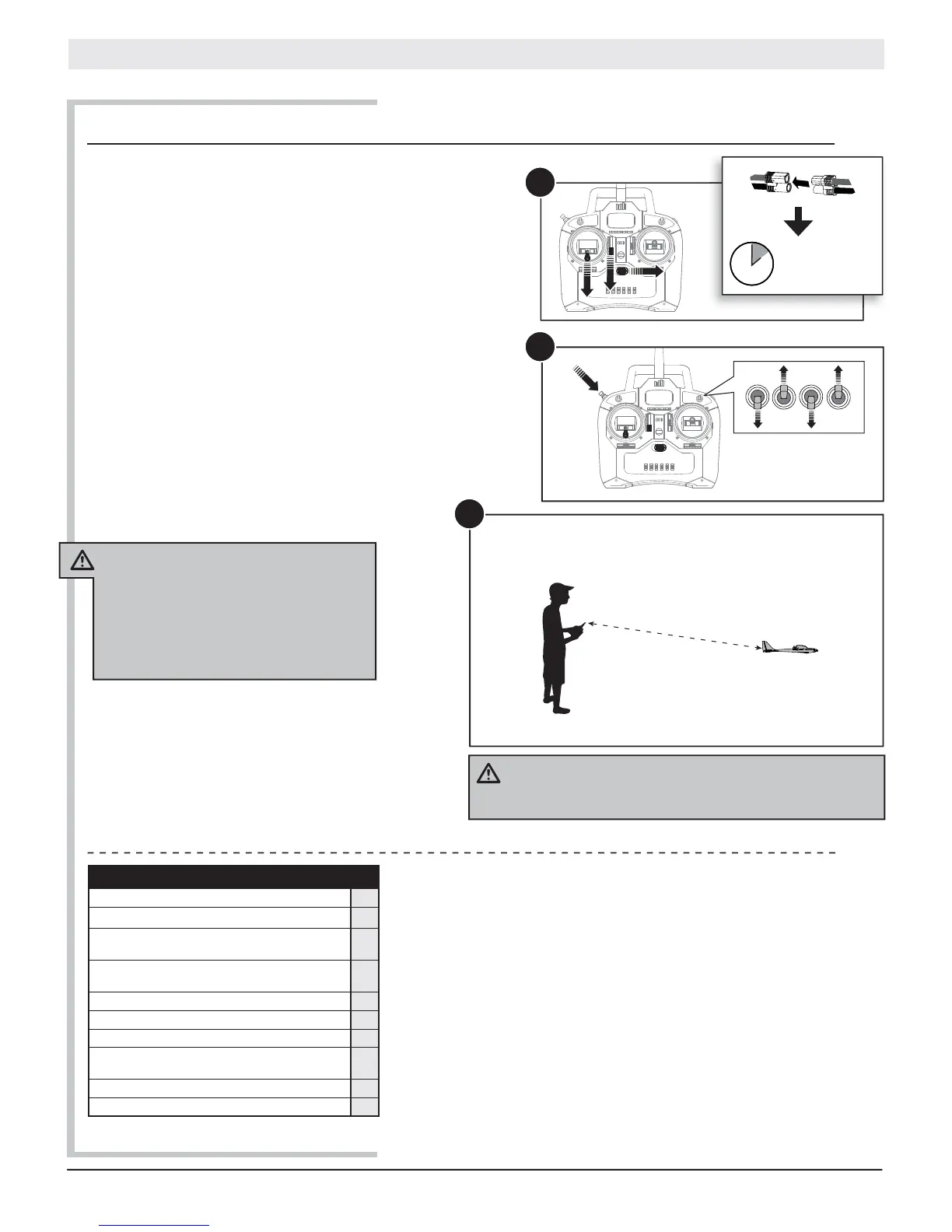 ruder, Querruder und Gas um sicher zu stellen, dass