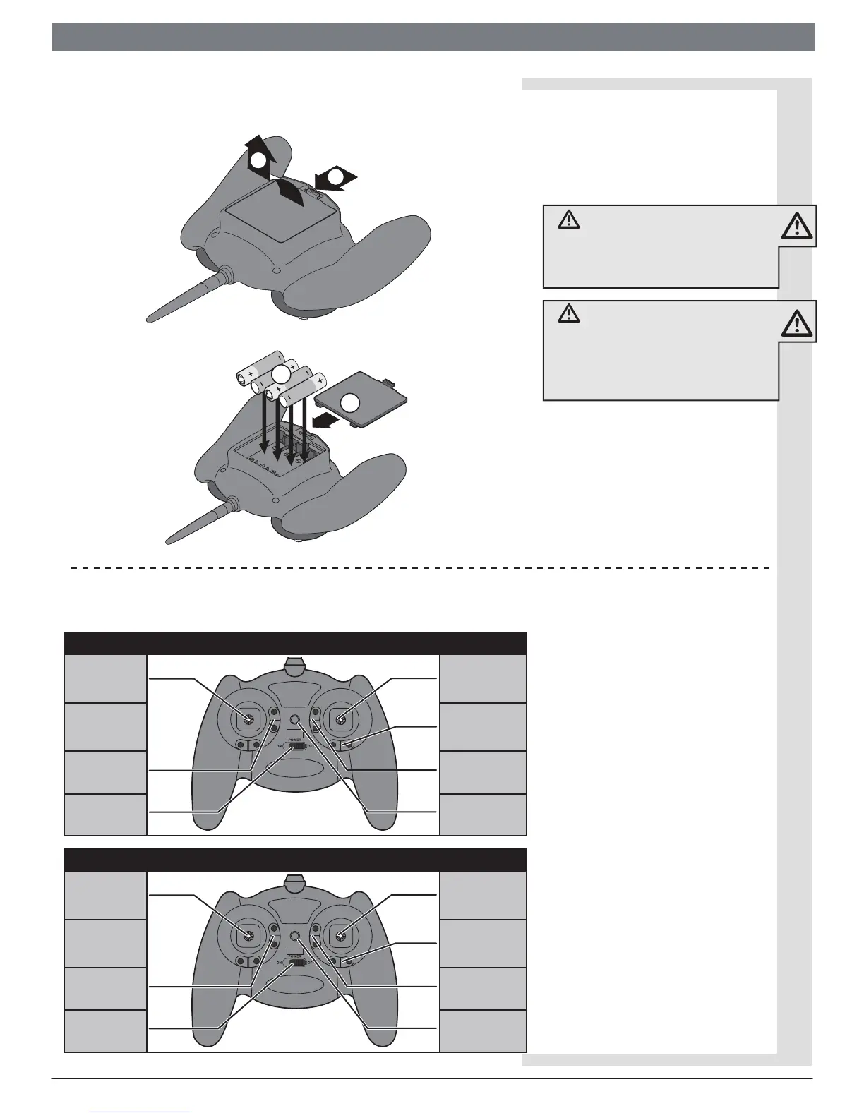 controls for Mode 2 and Mode 1 transmitters.