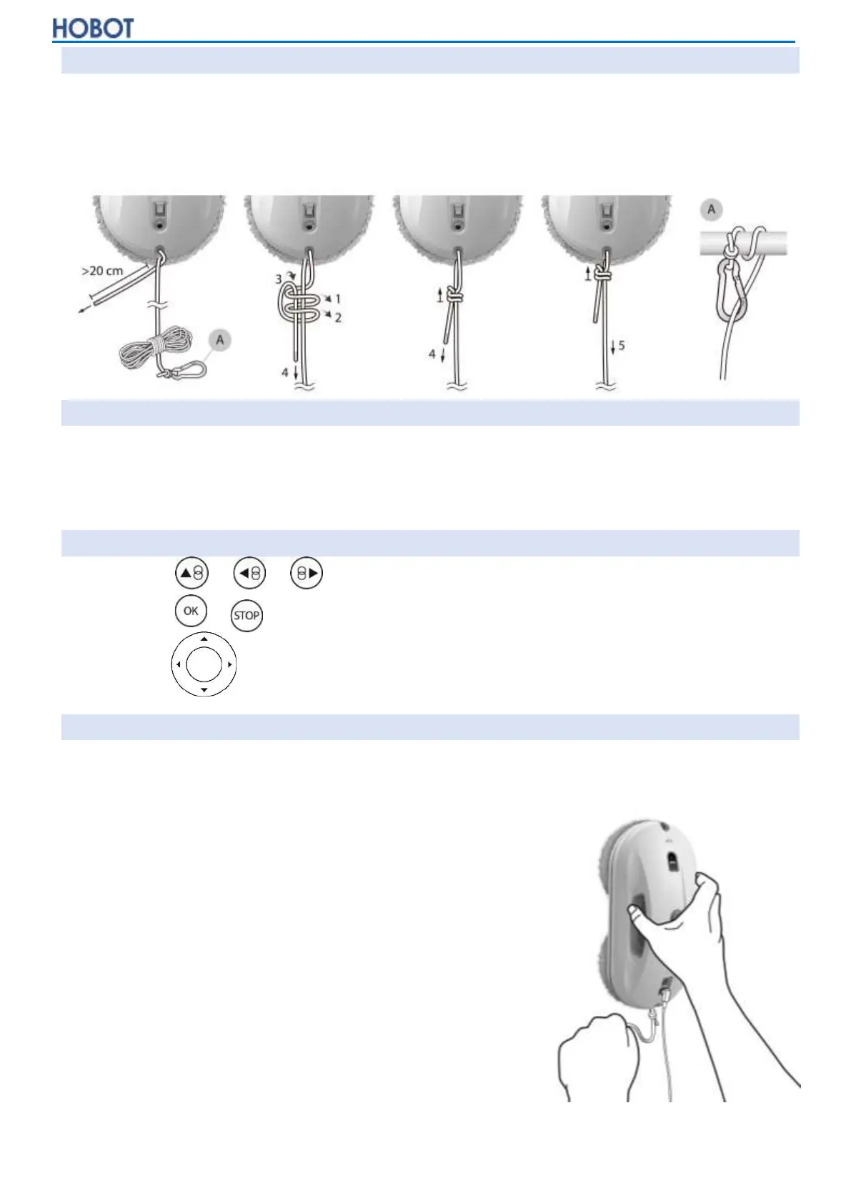 (1) Hold the safety rope with one hand and grasp HOBOT tightly with the other