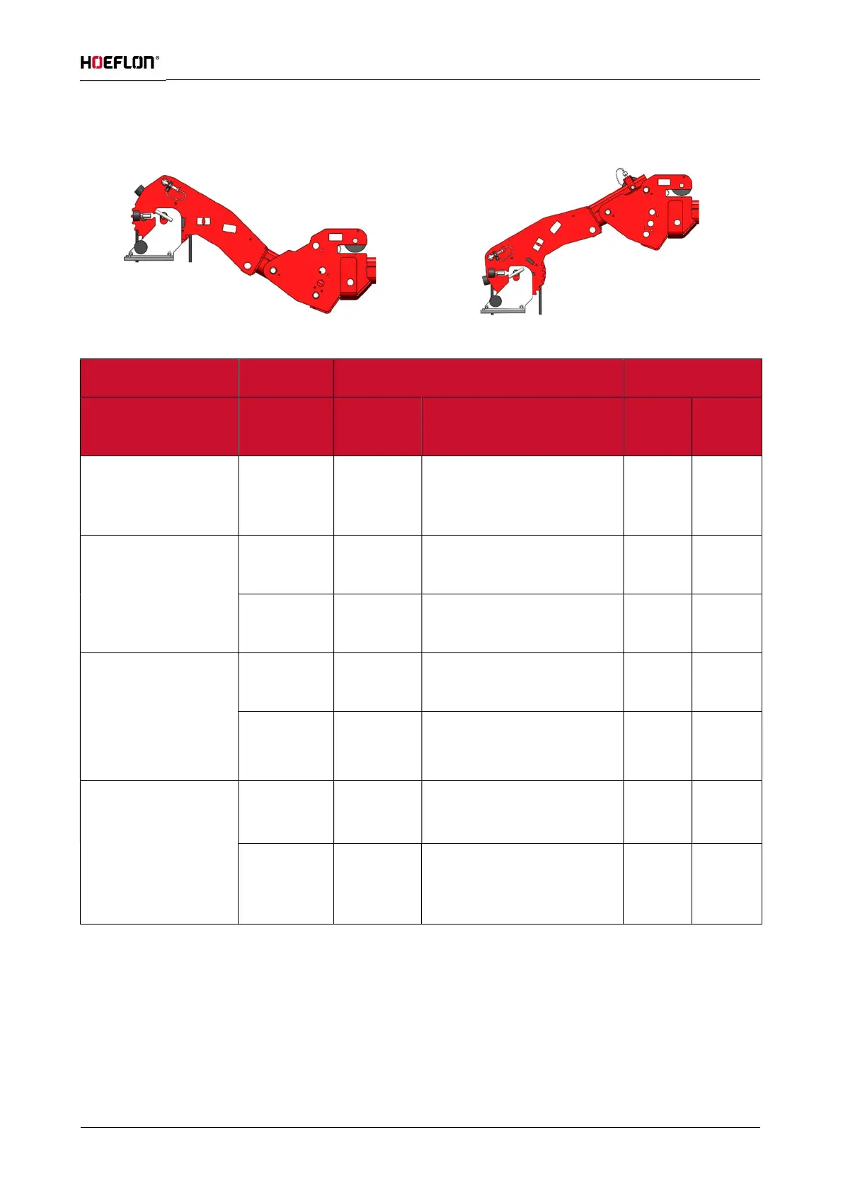 Max. boom angle Min. jib