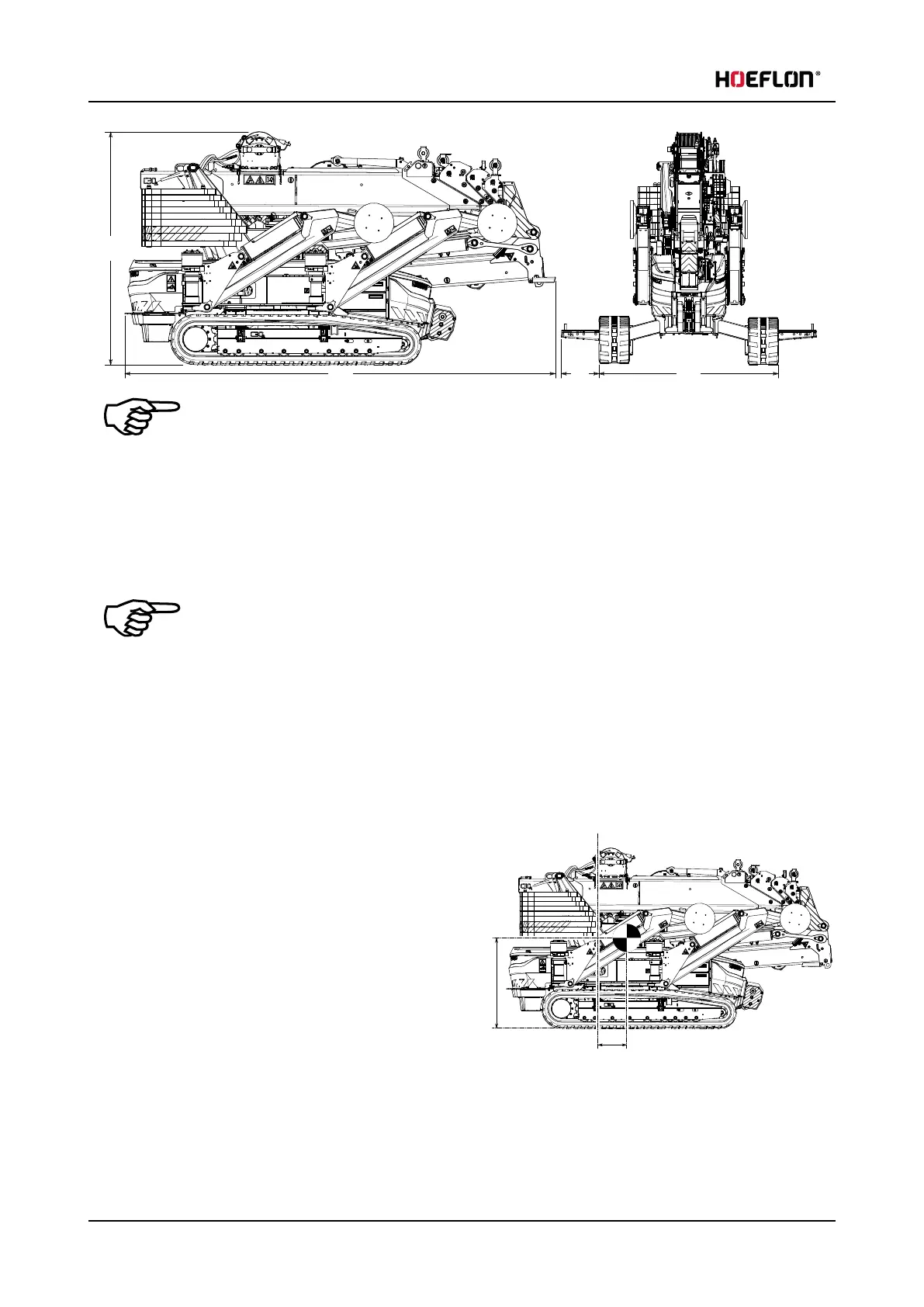 The width of the crawler tracks can be set independently.