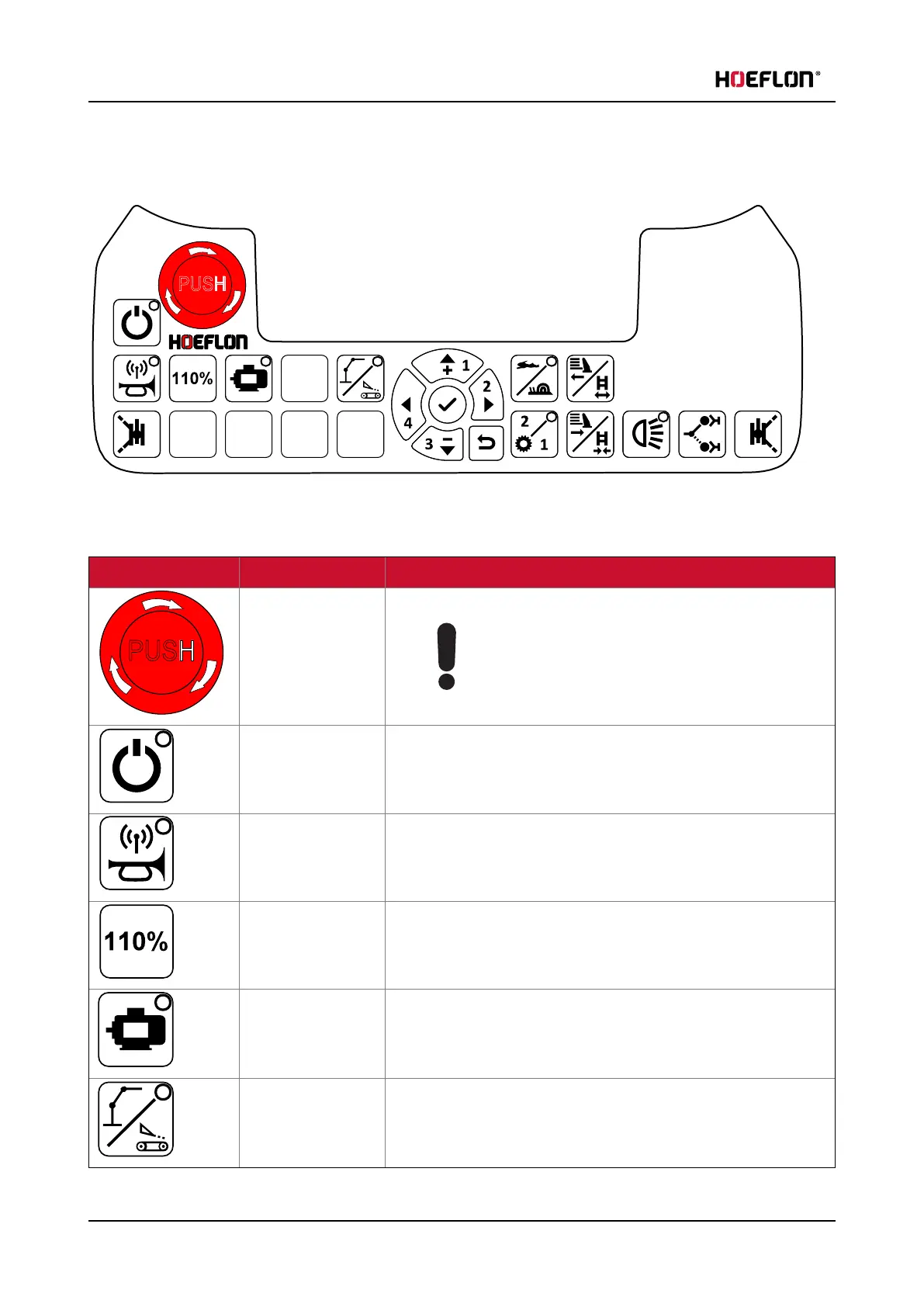 Emergency stop Immediately stops all functions of the crane.