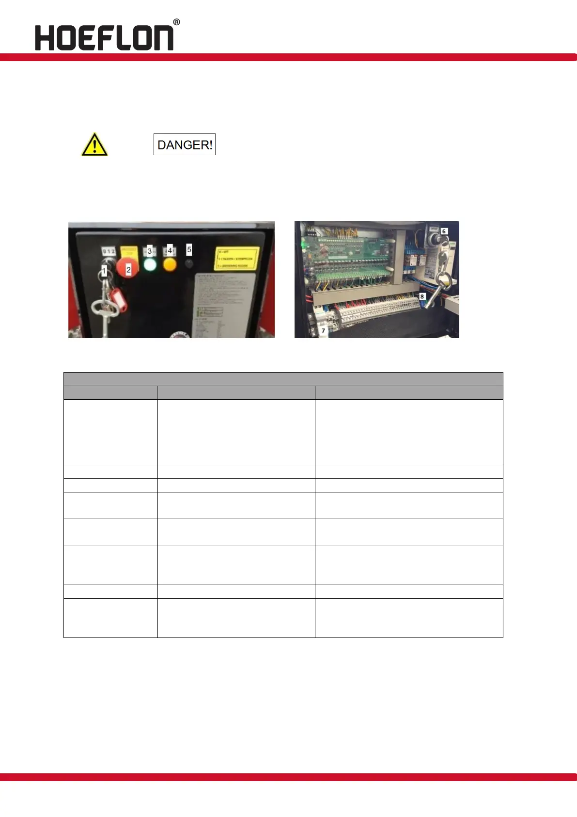 There are a number of functions present on the electrical cabinet. These functions are shown and