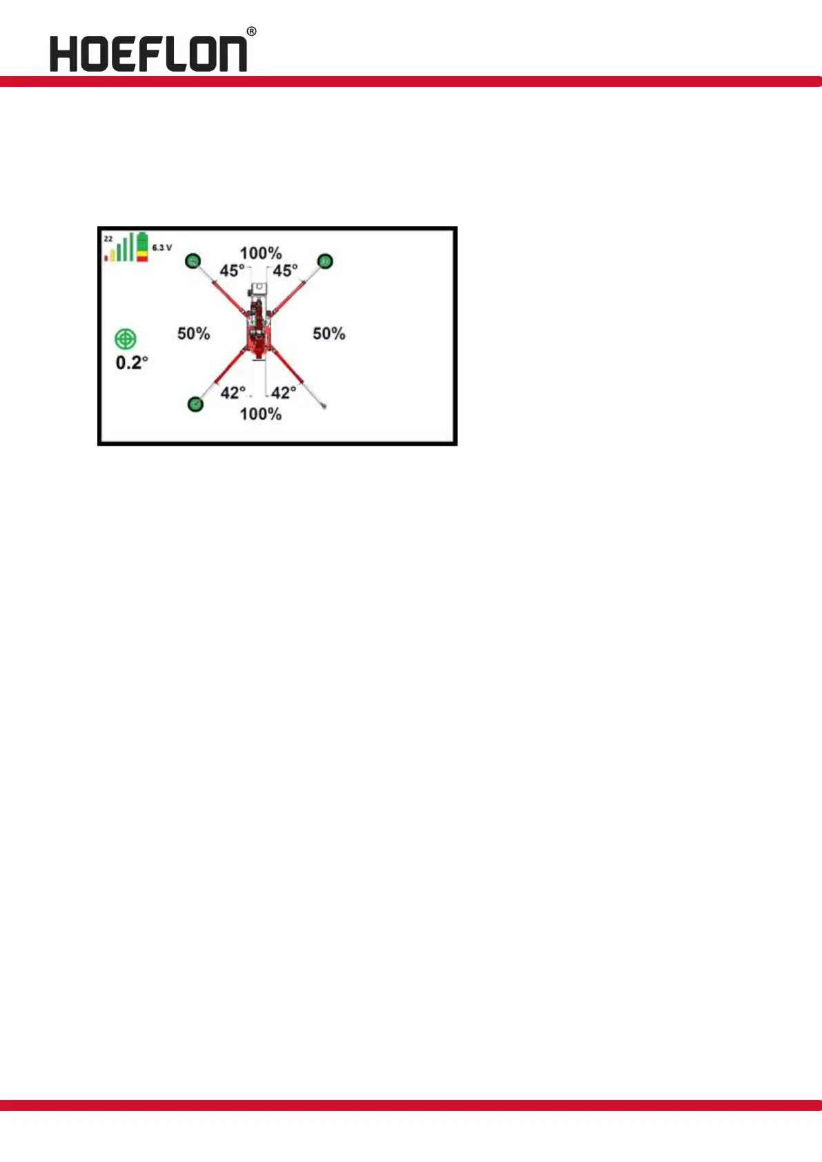 The degree of levelling of the machine is also shown. This is indicated by the green circles in