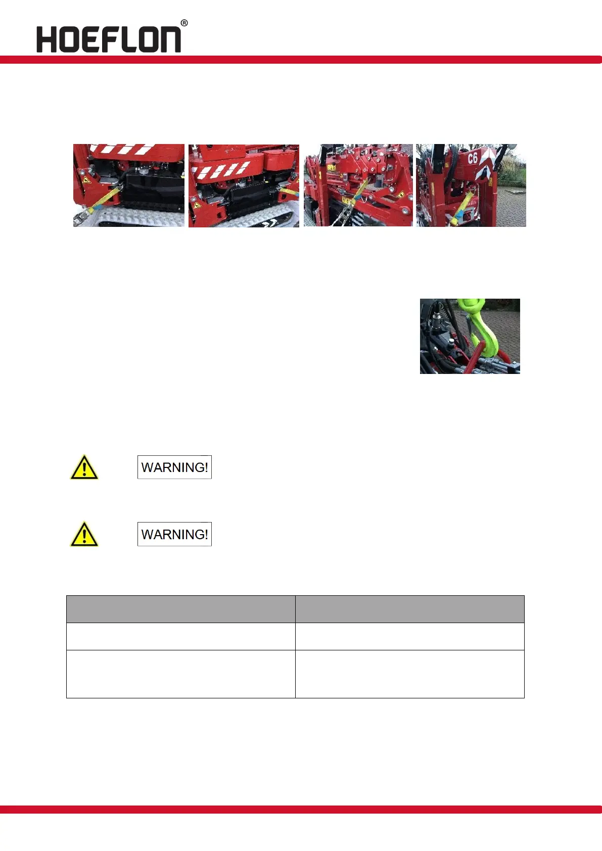 capacity of at least 3000 kg. Fasten these to the lifting point on the