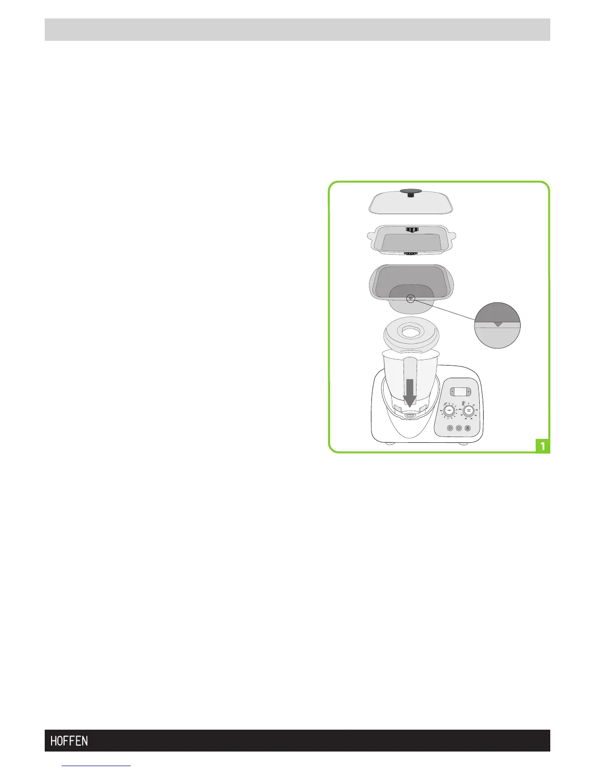 1. Umieścić misę miksującą z pokrywą na urządzeniu bez miarki i wlać do niej wodę