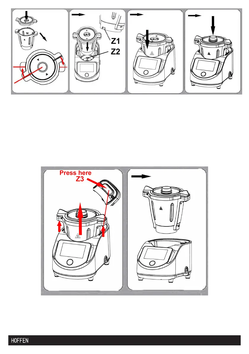 1. Złap za oba uchwyty misy i naciśnij przyciski(na obu uchwytach) zwalniania