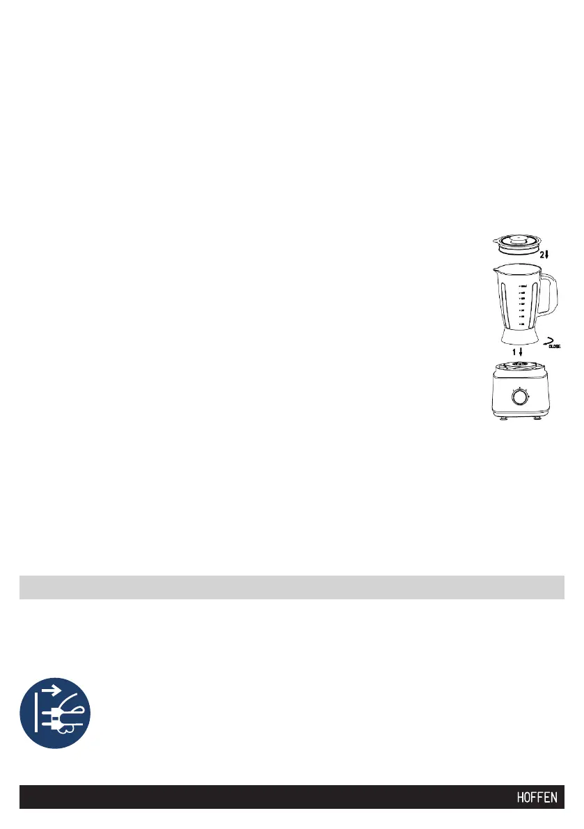 2. Nałóż dzbanek blendera na korpus, tak, aby wypustki w korpusie