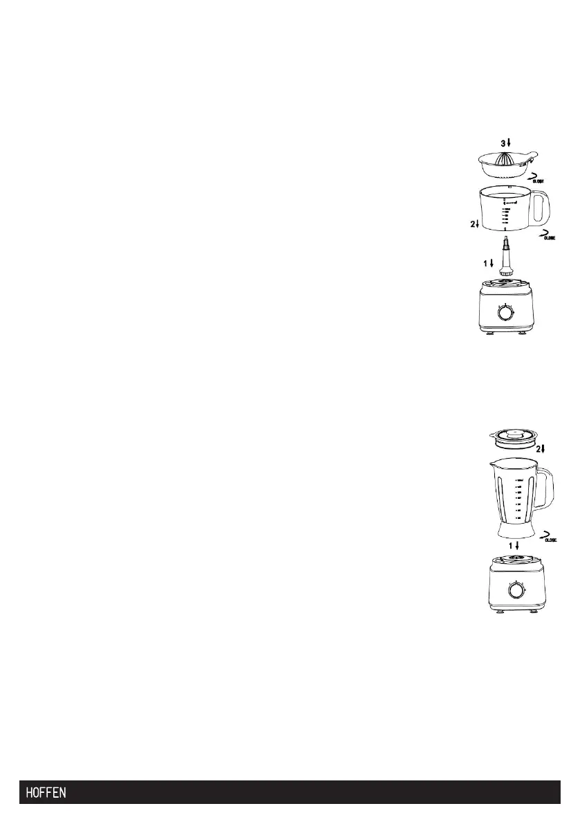 2. Put the blender jug onto the body, so that the tabs in the body