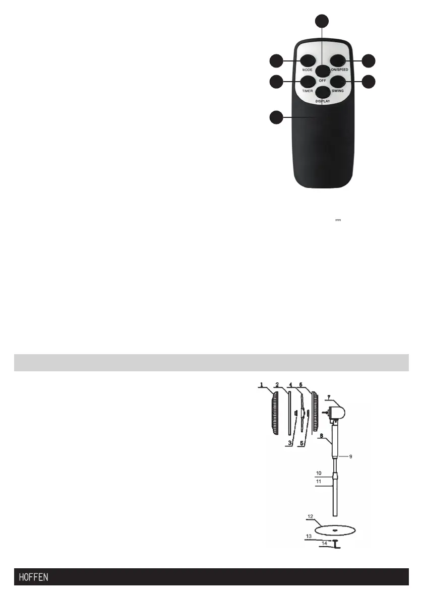 • The fan is equipped with a remote control powered with two 1.5 V AAA batteries.