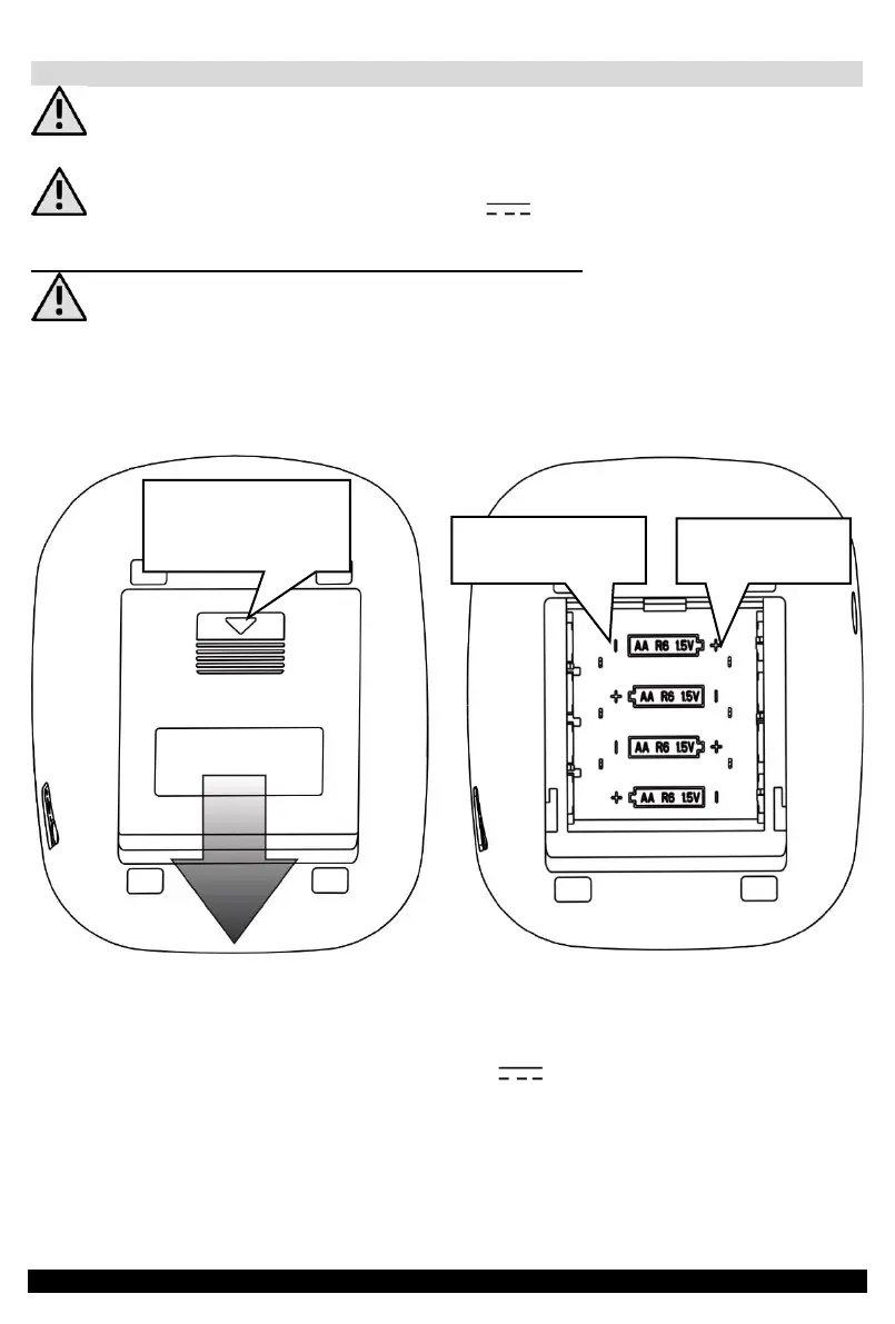 Open the battery compartment cover by sliding and removing the cover as illustrated.