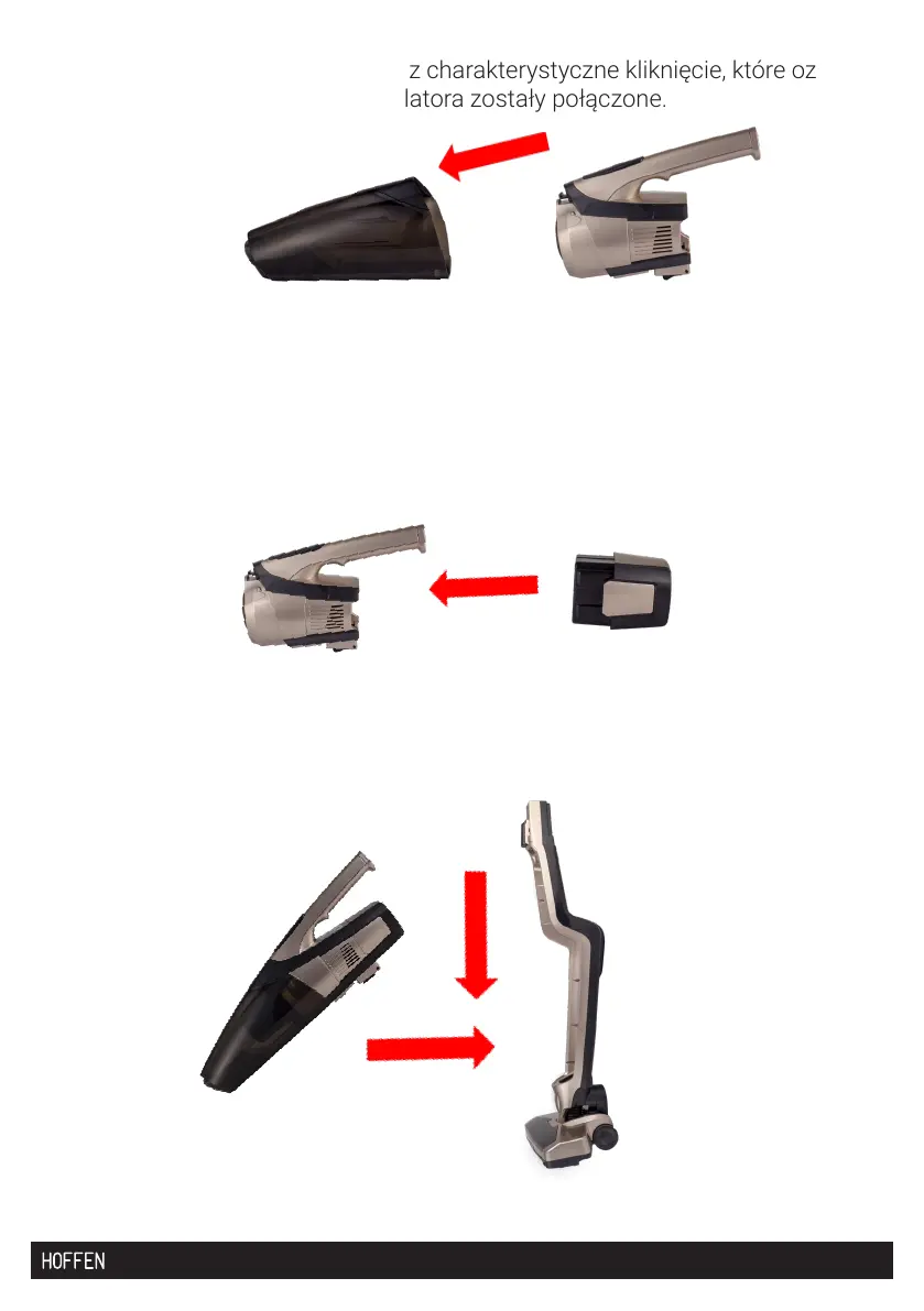 7. Następnie włóż połączone części (pojemnik na kurz wraz z bazą akumulatora