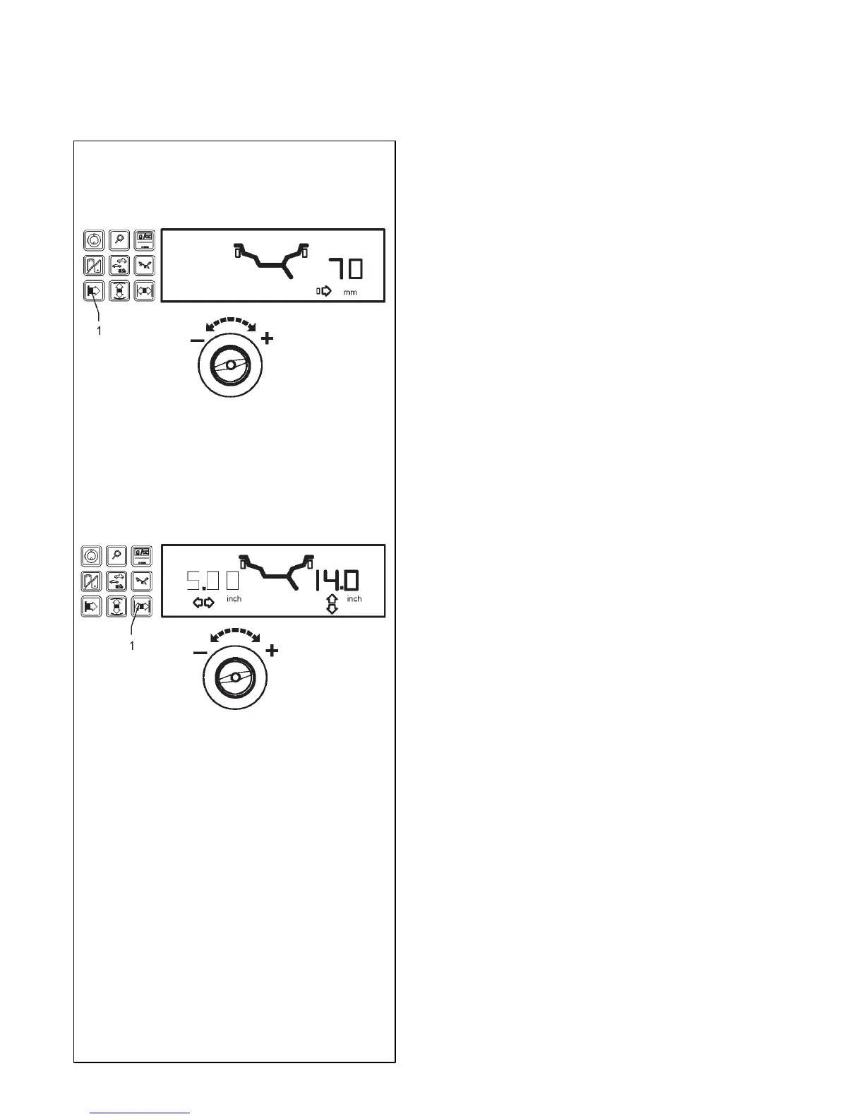 Auf der Anzeige werden die Symbole für Abstand und mm ein-